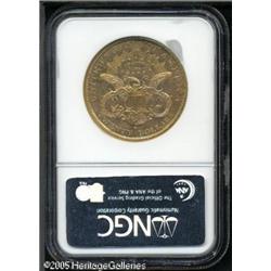 <B>1885-S $20 MS62 Prooflike NGC.</B></I> The well struck, typically abraded surfaces display flashy prooflike reflectivity in the fields, and appealing terra cotta and gold toning. Not a particularly scarce issue at the MS62 grade level, but rare with fully Prooflike fields. Lot:9194