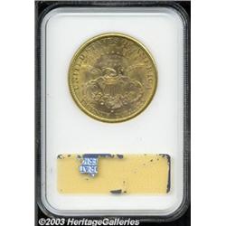 1885-S $20 MS64 NGC. All but unsurpassable in terms of surface preservation, this bright yellow-gold specimen is nicely frosted with swirling cartwheel effects. Lightly abraded, as befits the assigned grade, yet uncommonly smooth for this otherwise easily obtainable S-mint date. In the past 10 years, we have only offered one other Choice BU '85-S, and this appears to be a slightly better example. Population: 25 in 64, 6 finer (11/03). Important notice: Heritage usually auctions material at the rate of 200-250 lots per hour. On some occasions eBay Live bid software or the Internet may not be able to keep up with the pace of the auction. We recommend placing a realistic absentee bid now as insurance to avoid disappointment. Occasionally the auctioneer may eliminate or reject an eBay Live bid, and the auctioneer may also reopen a lot after the close of the eBay live bidding (usually because we missed an audience bid), and may reject your bid even if it shows you as the winning bidder. By bidding via eBay Live, you agree that Heritage may award the lot to another bidder at its sole discretion under the circumstances described above or any other reasonable circumstances. Also please note that all Heritage lots purchased through eBay Live carry a 20% Buyer's Premium. Please make sure you read the Terms and Conditions before you bid.