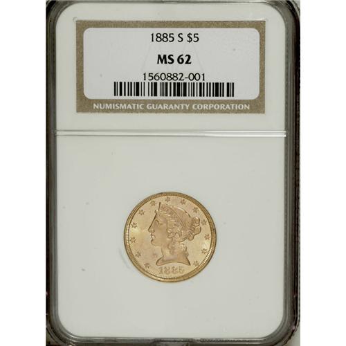 1885-S $5 MS62 NGC. NGC Census: (909/1047). PCGS P