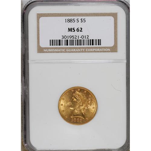 1885-S $5 MS62 NGC. NGC Census: (922/1052). PCGS P