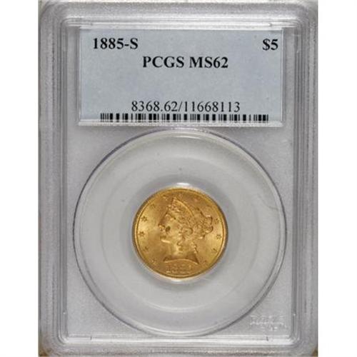 1885-S $5 MS62 PCGS. PCGS Population (623/781). NG