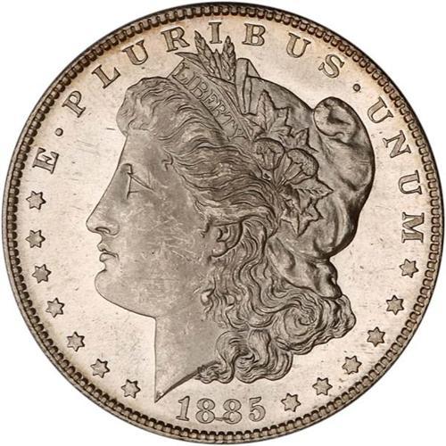 <b>1885-S Morgan Dollar. PCGS graded MS63.</b> Eye-catching brilliance cascades from top to bottom on the untoned silver surfaces of this startlingly fresh looking Gem 1885-S. Struck with preciseness only now and then found, it has swirling pools of mirror reflection from the surfaces, with islands of purest white frost rising up with into the main devices <b>(PCGS # 7164)</b>