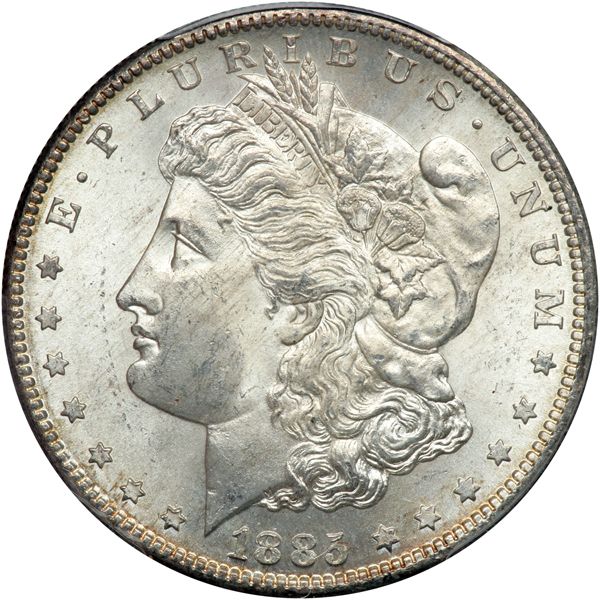 1885-S Morgan Dollar. PCGS graded MS-64 CAC Approved. Well struck with a hint of gold tone. Glistening luster as on just about every example of this well-made date in choice-to-gem grades. Easily surpasses most average MS64 specimens (PCGS # 7164) .