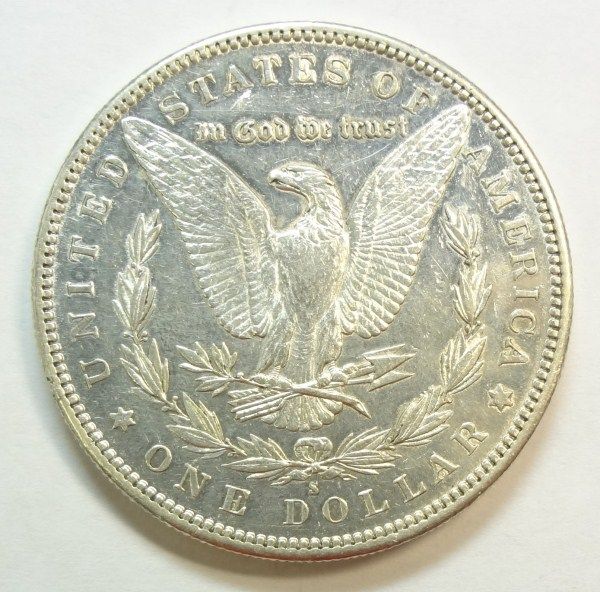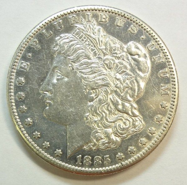 1885-S Morgan $, Scarce S Mint AU-UNC Cleaned long ago