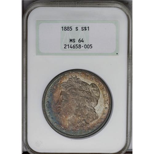 1885-S S$1 MS64 NGC. Deep plum, golden-brown, and appl 1885-S[img border='0' src='http://www.heritag