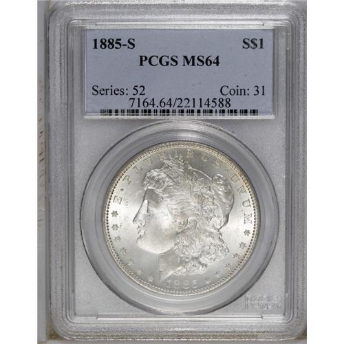 1885-S S$1 MS64 PCGS. A nicely struck and virtually un