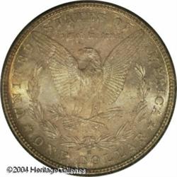 1885-S S$1 MS66 PCGS. Fairly well defined with cor <B>1885-S S$1 MS66 PCGS.</B></I> Fairly well defined with coruscant mint luster and some medium lime-gray, orange, and ice-blue patina over each side. Minimally abraded and a worthwhile example of this conditionally scarce Redfield Dollar. Housed in an early PCGS holder. Population: 23 in 66, 2 finer (11/04). <BR><BR><B>Important notice:</B> Heritage usually auctions material at the rate of 200-250 lots per hour. On some occasions eBay Live bid software or the Internet may not be able to keep up with the pace of the auction. We recommend placing a realistic absentee bid now as insurance to avoid disappointment. Occasionally the auctioneer may eliminate or reject an eBay Live bid, and the auctioneer may also reopen a lot after the close of the eBay live bidding (usually because we missed an audience bid), and may reject your bid even if it shows you as the winning bidder. By bidding via eBay Live, you agree that Heritage may award the lot to another bidder at its sole discretion under the circumstances described above or any other reasonable circumstances. Since eBay bids are not shown to us until we open the lot on the floor, we treat those bids just like floor bids. In most cases the floor responds before the eBay bid is presented to us, due to Internet lag time, so for consistency we have made it a policy that floor bids are always considered first over tie eBay live bids. Also please note that all Heritage lots purchased through eBay Live carry a 20% Buyer's Premium. Please make sure you read the Terms and Conditions before you bid. This lot is being auctioned in conjunction with a live floor auction by Heritage Galleries & Auctioneers. All final auction and invoice information will be supplied by Heritage Galleries & Auctioneers, and all other information should be considered preliminary. Lot:7521