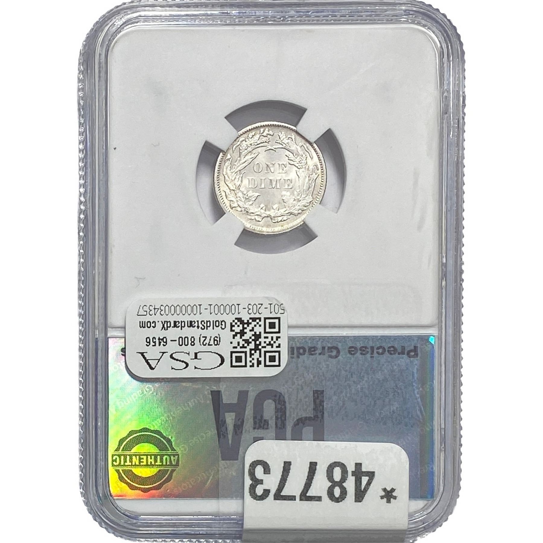 COINS AND CURRENCY LISTED IN GSA’S CATALOG AS GRADED AND ENCAPSULATED BY PCGS, NGC, ANACS, ICG, PCGS CURRENCY, PMG, PCGS BANKNOTE GRADING, CMC OR ANY OTHER THIRD-PARTY GRADING SERVICE ARE LIKEWISE SOLD “AS-IS” EXCEPT AS EXPRESSLY SET FORTH HEREIN. ALL THIRD-PARTY GRADING SERVICE GUARANTEES, INCLUDING AUTHENTICITY, ARE THE SOLE RESPONSIBILITY OF THE THIRD-PARTY GRADING SERVICE AND NOT WARRANTIES OR GUARANTEES OF GSA. BIDDERS SHOULD CONTACT THESE THIRD-PARTY GRADING SERVICES DIRECTLY WITH RESPECT TO ANY CLAIMS OR QUESTIONS THEY MAY HAVE CONCERNING THEIR GUARANTEES AND WARRANTIES. BIDDERS ACKNOWLEDGE AND AGREE THAT AUCTIONEER IS NOT BOUND BY OR LIABLE FOR ANY OPINION OR CERTIFICATION BY ANY THIRD-PARTY GRADING SERVICE. REMOVAL OF A PRODUCT FROM ITS PROTECTIVE CASING OR HOLDER OR ALTERATION OF ANY COIN HOLDER WAIVES ALL RIGHTS CONCERNING THE PRODUCT CONTAINED THEREIN.