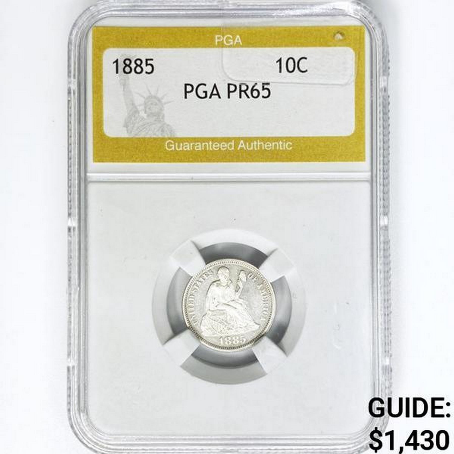 1885 Seated Liberty Dime PGA PR65