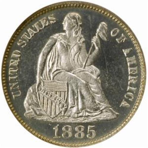<style type="text/css"> body, td, th { font-family: Arial, Helvetica, sans-serif; font-size: 12px; color: #482424; margin: 0px; padding: 0px; } #header { background-image: url(http://www.bowersandmerena.com/ebay/images/template_v3_01.gif); clear: both; background-color: #590303; border-top-width: 2px; border-top-style: solid; border-top-color: #B38C4F;}#header #header_wrapper { height: 75px; clear: both; width: 800px; margin-right: auto; margin-left: auto; background-image: url(http://www.bowersandmerena.com/ebay/images/template_v3_03.gif); background-repeat: no-repeat; background-position: right; color: #F3EDCC;}#header #header_wrapper #header_logo { float: left; height: 75px; width: 444px; background-image: url(http://www.bowersandmerena.com/ebay/images/template_v3_02.gif); background-repeat: no-repeat; font-size: 10px; text-transform: capitalize; color: #B38C4F;}#header #header_wrapper #header_right { float: left; height: 75px; width: 356px; text-align: right;}#header #header_wrapper #header_right #headerLoginBtn { margin-bottom: 30px;}#header #header_wrapper #header_right input#txtSearch { color: #B49056; border: 1px solid #B49056; width: 175px; padding-top: 3px; padding-right: 3px; padding-bottom: 4px; padding-left: 3px;}#nav { height: 37px; background-image: url(http://www.bowersandmerena.com/ebay/images/template_v3_05.gif); clear: both;}#nav #nav_wrapper { height: 35px; width: 800px; margin-right: auto; margin-left: auto; border-left-width: 1px; border-left-style: solid; border-left-color: #B38C4F;}#nav #nav_wrapper a { padding-right: 15px; padding-left: 15px; border-right-width: 1px; border-right-style: solid; border-right-color: #B38C4F; height: 25px; padding-top: 10px; display: block; float: left; text-decoration: none; font-weight: bold; color: #5D0303;}#nav #nav_wrapper a:hover { color: #B38C4F;}#nav #nav_wrapper #search { float: right; padding-top: 7px;}#nav #nav_wrapper #search #txtSearch { font-family: Arial, Helvetica, sans-serif; font-size: 10px; text-transform: uppercase; color: #D2AE75; border: 1px solid #B38C4F; padding: 3px;}#content_bgd { background-image: url(http://www.bowersandmerena.com/ebay/images/template_v3_09.gif); background-repeat: repeat-y; background-position: center; padding-top: 15px; padding-bottom: 15px; background-color: #FBFBDB;}#content_wrapper { clear: both; height: auto; width: 800px; margin-right: auto; margin-left: auto;}.LotDetailWhite{ line-height:normal; font-size:13px; font-family: arial,helvetica,sans-serif; color: White; font-weight: bold;}.LotDetailInformation{ line-height:normal; font-size: 13px; font-family: arial,helvetica,sans-serif;}.LotDetailMessage{ line-height:normal; font-size: 13px; font-family: arial,helvetica,sans-serif; color: red;}}tr.HeaderAuctionTitle td { color: #000000; font-weight: bold; padding: 2px; background-image: url(http://www.bowersandmerena.com/ebay/images/template_v3_05.gif); background-repeat: repeat-x; border-bottom-width: 1px; border-bottom-style: solid; border-bottom-color: #B38C4F;}table.AuctionSummary a, table.AuctionSummary a:link, table.AuctionSummary a:visited { color: #0000FF; text-decoration: none;}}td.tableHeaderLeft { border-left-width: 1px; border-left-style: solid; border-left-color: #B38C4F;}td.tableHeaderRight { border-right-width: 1px; border-right-style: solid; border-right-color: #B38C4F;}td.tableCellMiddle { border-left-width: 1px; border-left-style: solid; border-left-color: #B38C4F; border-right-width: 1px; border-right-style: solid; border-right-color: #B38C4F; padding: 5px;}tr.footer td { border-top-width: 1px; border-top-style: solid; border-top-color: #B38C4F;}</style></head><body><div id="header"> <div id="header_wrapper"> <div id="header_logo"> </div> <div id="header_right"> </div> </div></div><div id="nav"> <div id="nav_wrapper"> <a href="http://www.bowersandmerena.com">Our eBayLive Auctions</a> <a href="#PaymentInfo">Payment Information</a> <a href="#ShippingInfo">Shipping Information</a> <a href="#About">About Bowers and Merena</a> </div></div><div id="content_bgd"> <div id="content_wrapper"> <table width="100%" border="0" cellpadding="5" cellspacing="0" class="AuctionSummary"> <tbody> <tr class="HeaderAuctionTitle" style="height: 25px;"> <td align="left" class="tableHeaderLeft" > </td> <td align="center" class="tableHeaderRight"> <span style="font-size: large;">Lot #454. 1885 Seated Liberty Dime. Proof-67 Cameo (NGC).</span> </td> </tr> <tr> <td colspan="3" class="tableCellMiddle"> Satiny, overall sharp devices appear to float atop mirrored reflectivity in the fields. This is a bright, beautiful Superb Gem whose otherwise brilliant surfaces exhibit the lightest golden tinting at the rims. There are no grade-limiting blemishes. The 1885 is seen about as often as most other proof Seated Dimes from the 1880s, although examples that have been as carefully preserved as this piece are very scarce from a condition standpoint.