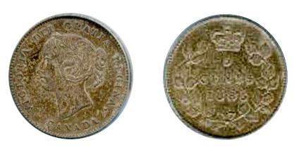 1885. Small 5. PCGS graded AU-53. Medium heavy toning.