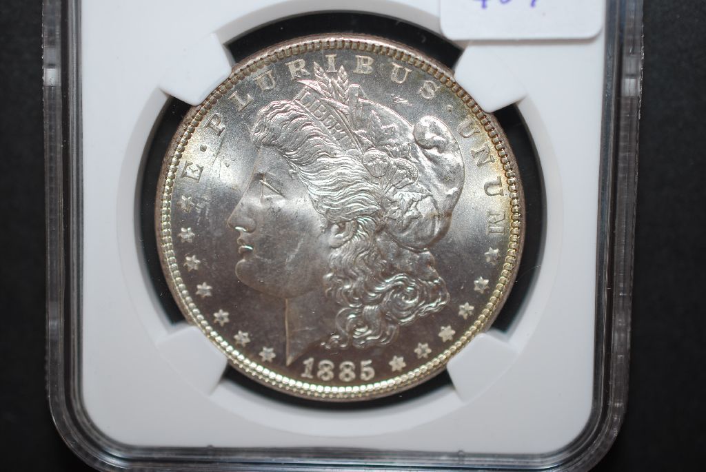 1885 US Silver Morgan $1; NGC Graded UNC Details-Obv. Improperly Cleaned; EST. $50-70