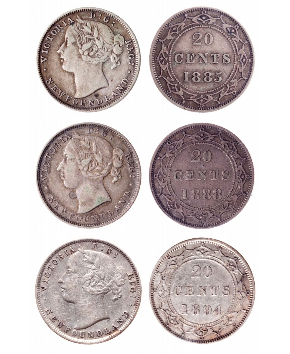 1885. Very Fine-20. Light to medium heavy toning. Ex. J.J. Pittman Coll., August 6-8, 1999. Lot #2654; 1885. Fine-12. Light to medium heavy toning. Same lot as above. 1894. Obverse port. #1. ICCS Very Fine-30. Lightly toned. Ex. MOORE's Torex auction. June 24-27, 2004. Lot #2324. Lot of three (3) pieces.