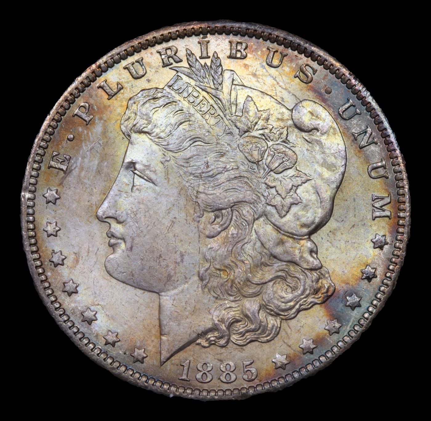1885-o Colorfully Toned Morgan Dollar $1 Grades Choice+ Unc.