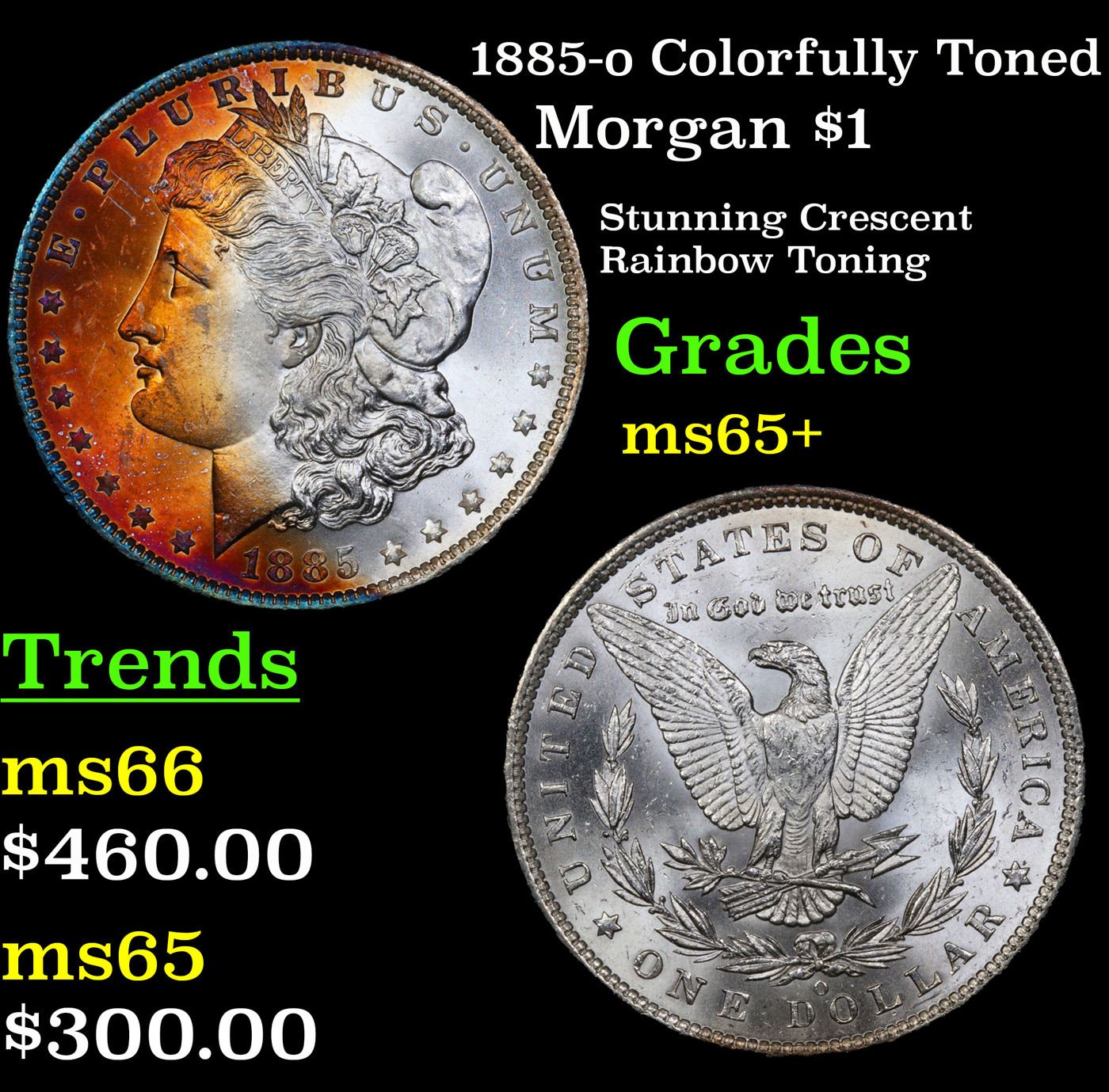 1885-o Colorfully Toned Morgan Dollar $1 Grades GEM+ Unc.