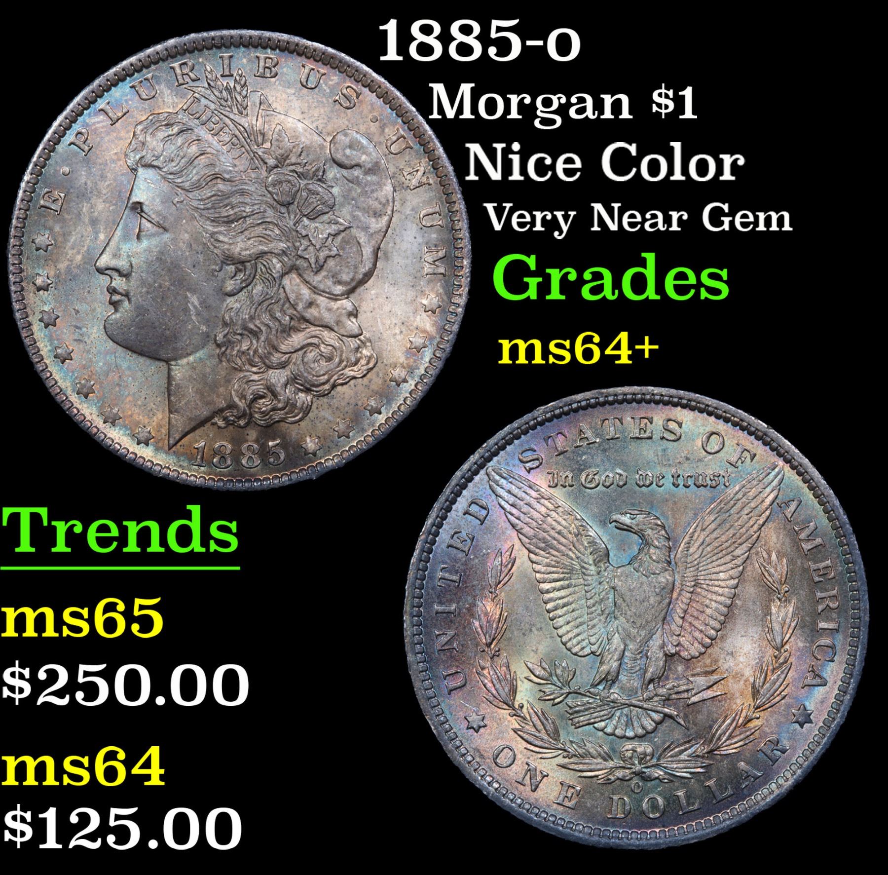 1885-o Nice Color Very Near Gem Morgan Dollar $1 Grades Choice+ Unc.