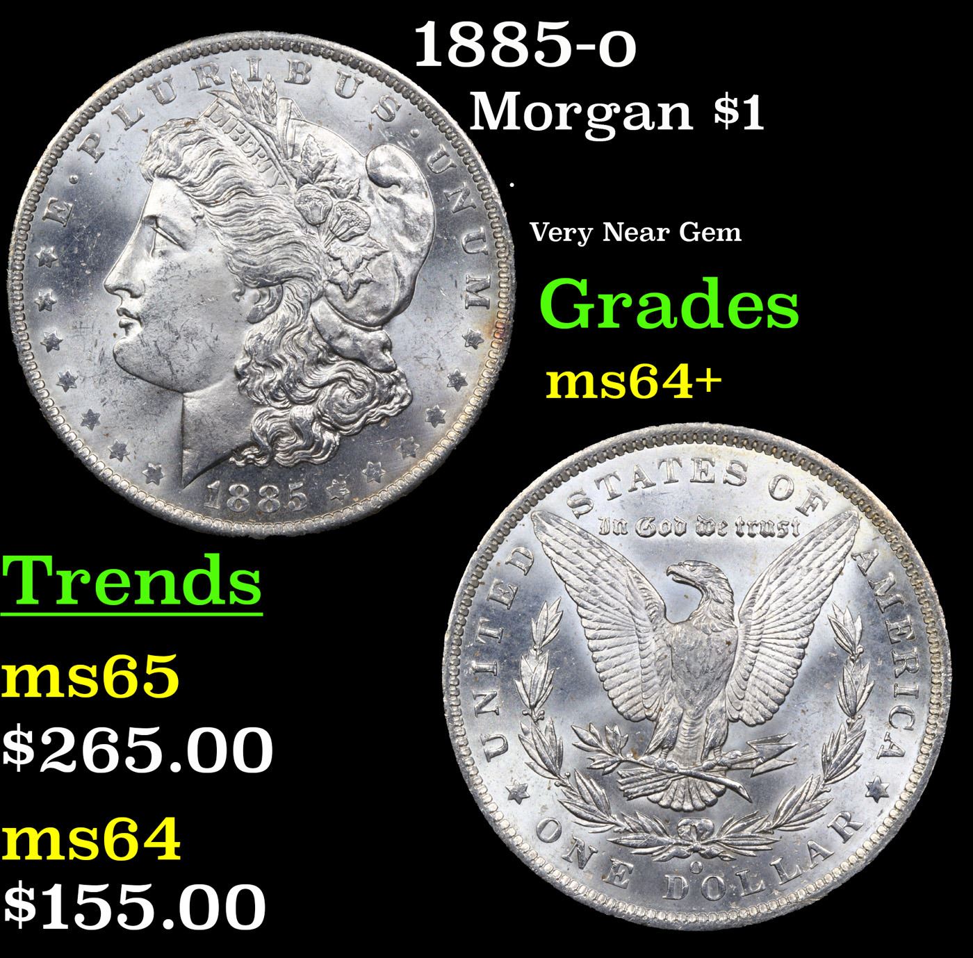 1885-o Morgan Dollar $1 Grades Choice+ Unc.