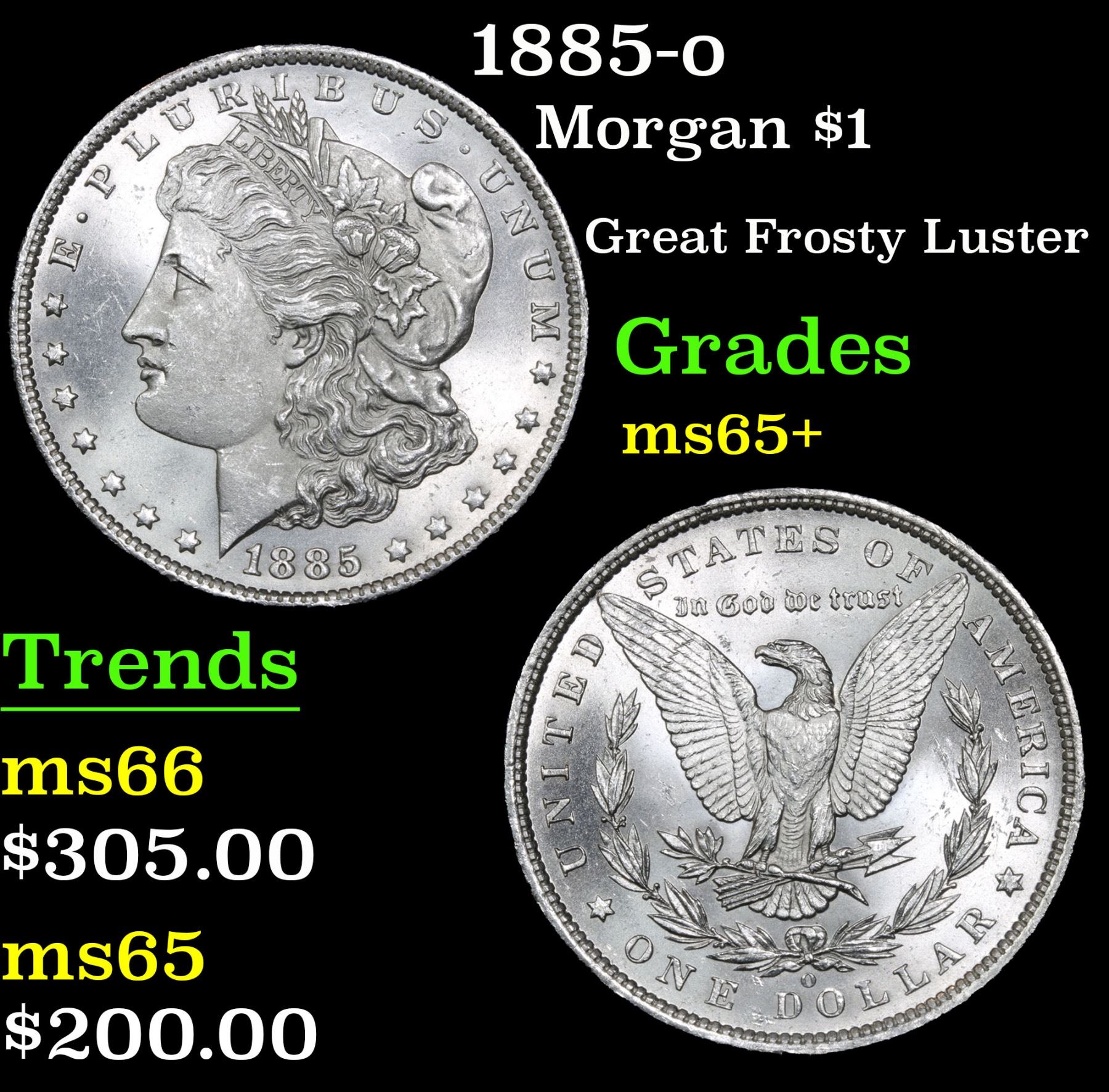 1885-o Great Frosty Luster . Morgan Dollar $1 Grades GEM+ Unc. A Corey's Pick, Bid to Win, Don't let it get Away, you might not find its equal Coin
