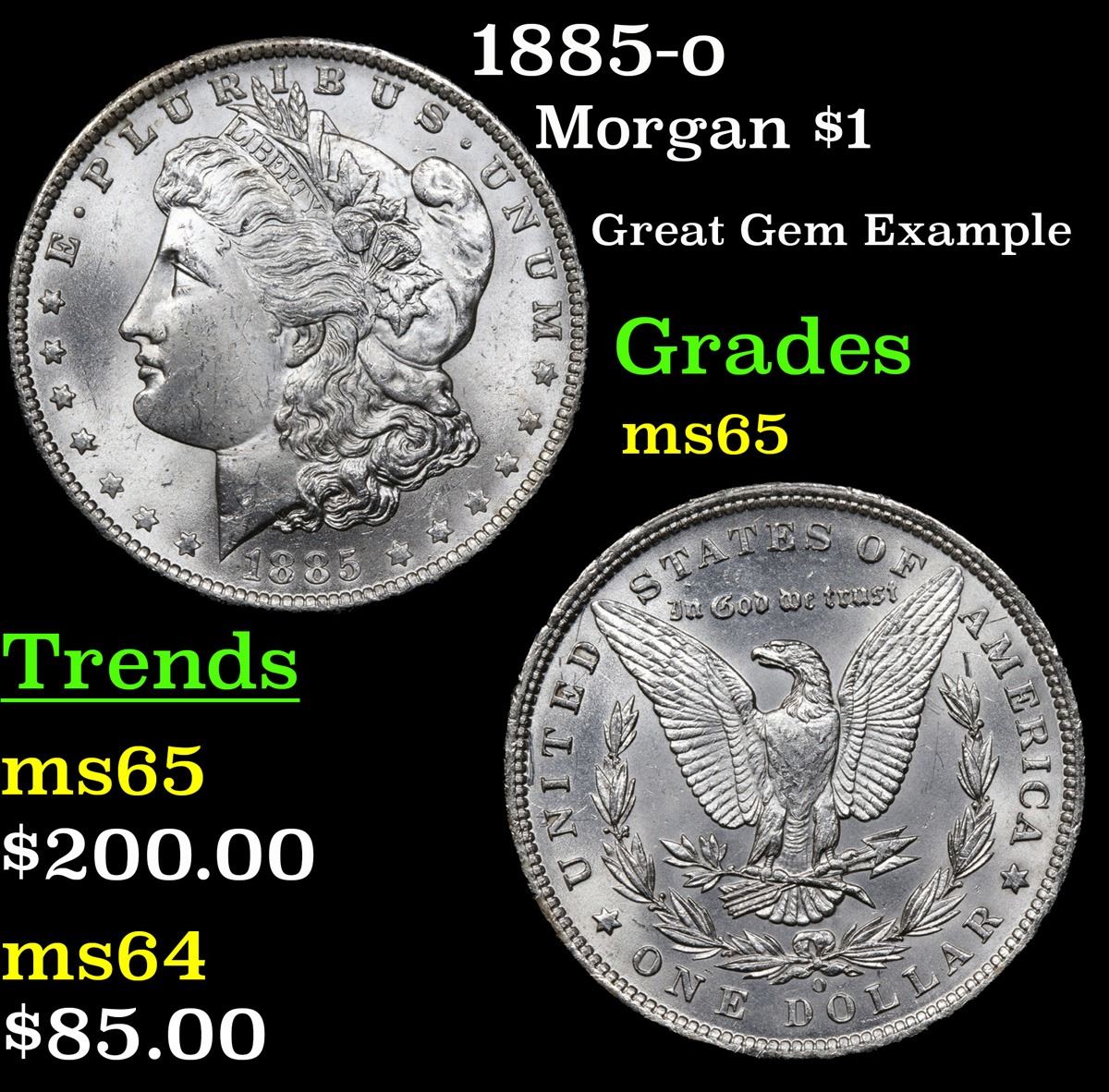 1885-o . Great Gem Example Morgan Dollar $1 Grades GEM Unc.