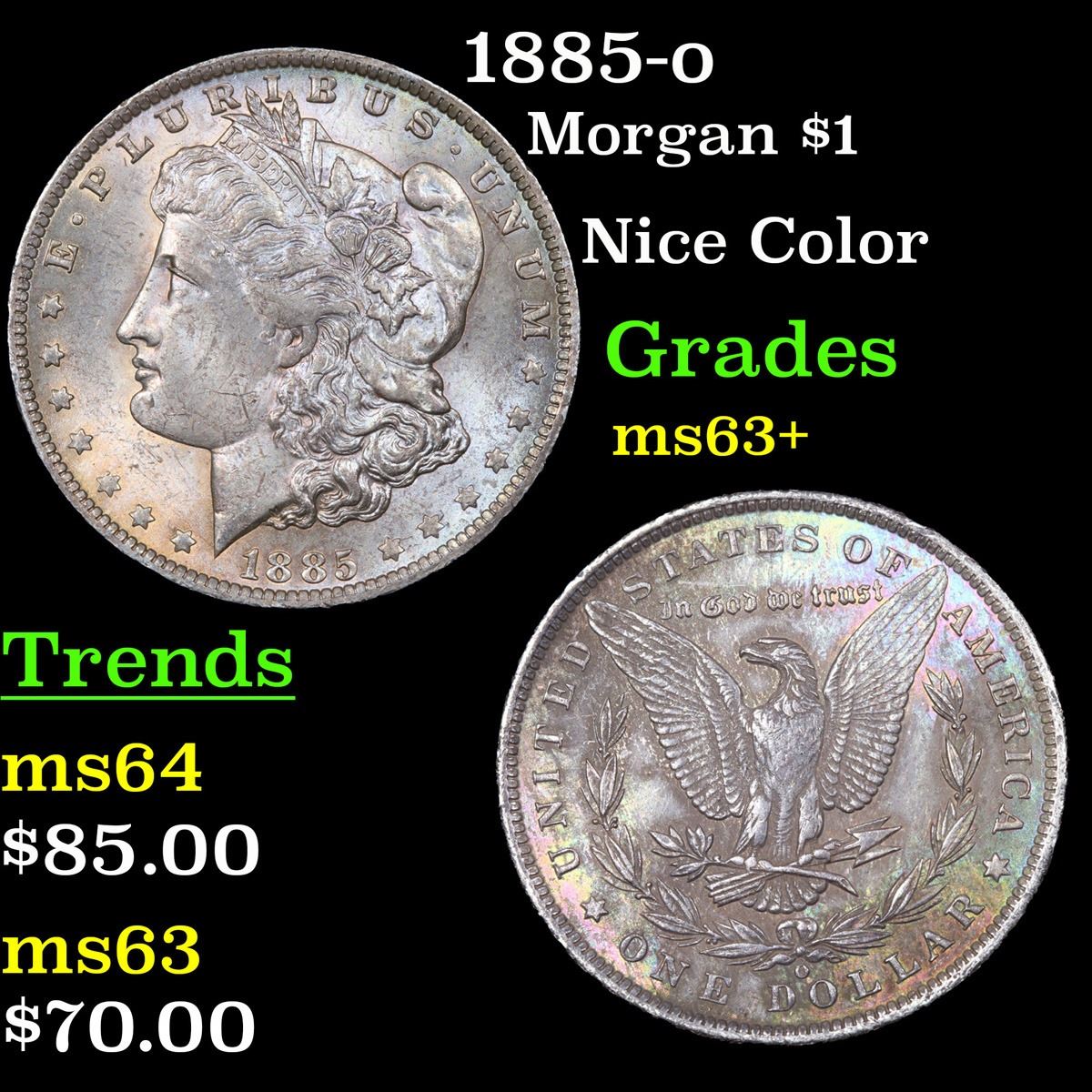 1885-o Nice Color . Morgan Dollar $1 Grades Select+ Unc.