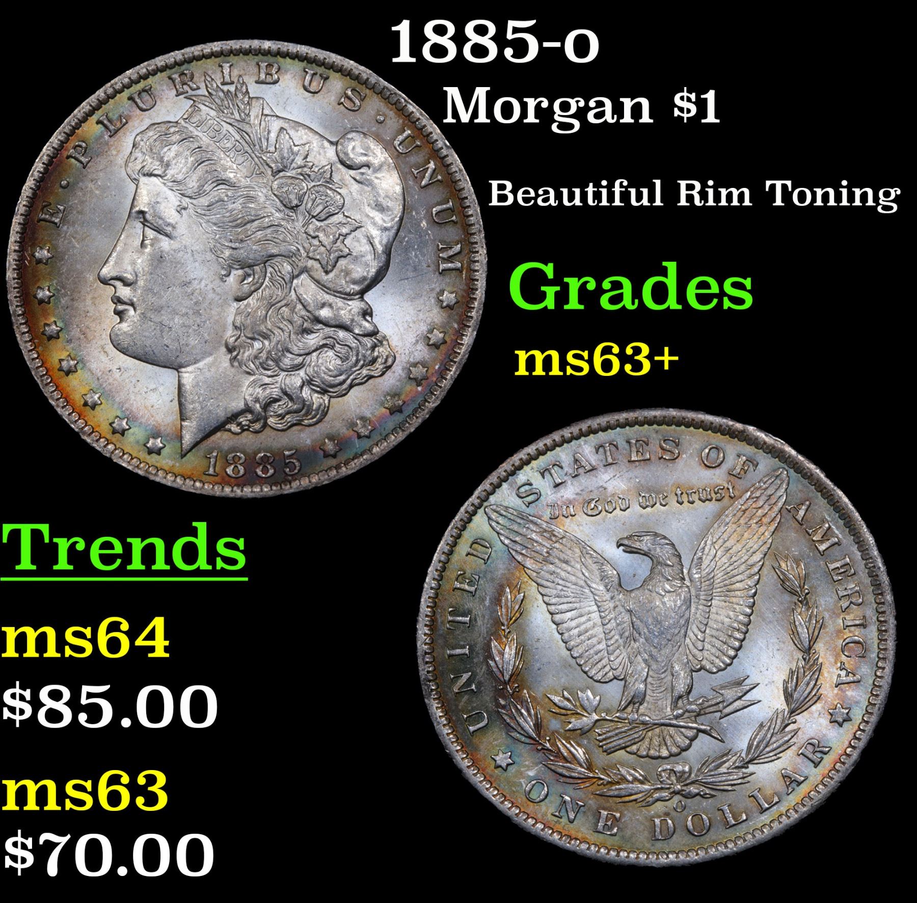 1885-o Beautiful Rim Toning . Morgan Dollar $1 Grades Select+ Unc.