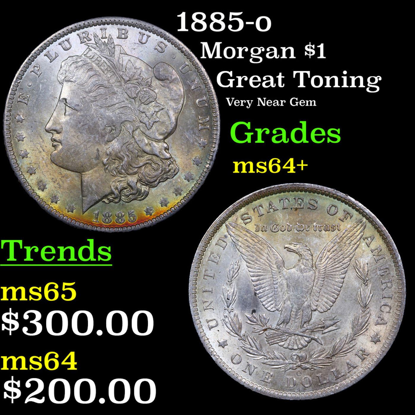 1885-o Colorfully Toned Morgan Dollar 1 Grades Choice+ Unc.