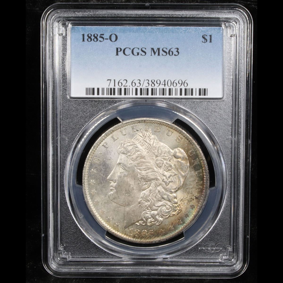 1885-o Rainbow Toned Morgan Dollar $1 Graded ms63 By PCGS. 0