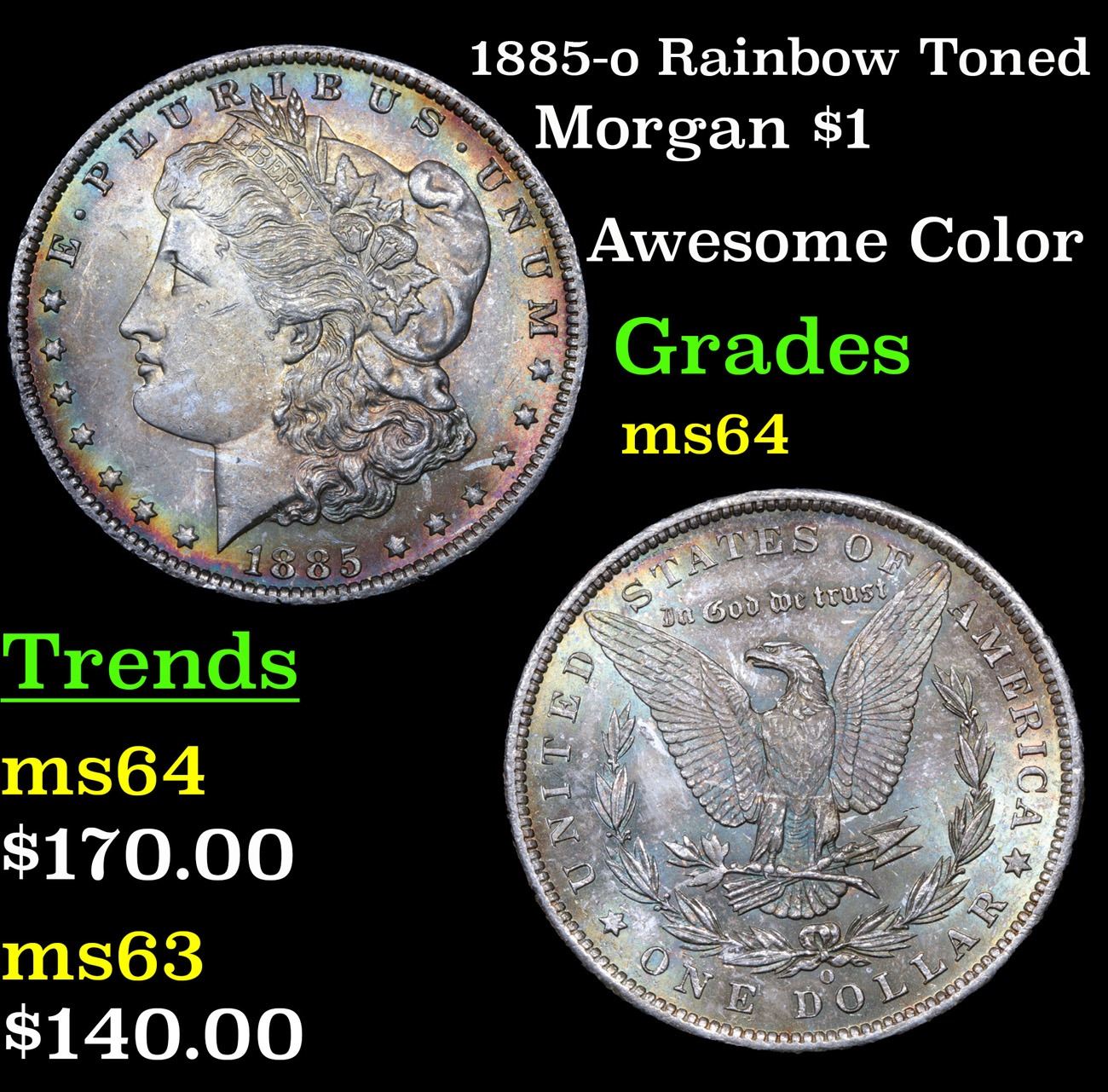 1885-o Rainbow Toned Awesome Color . Morgan Dollar $1 Grades Choice Unc.