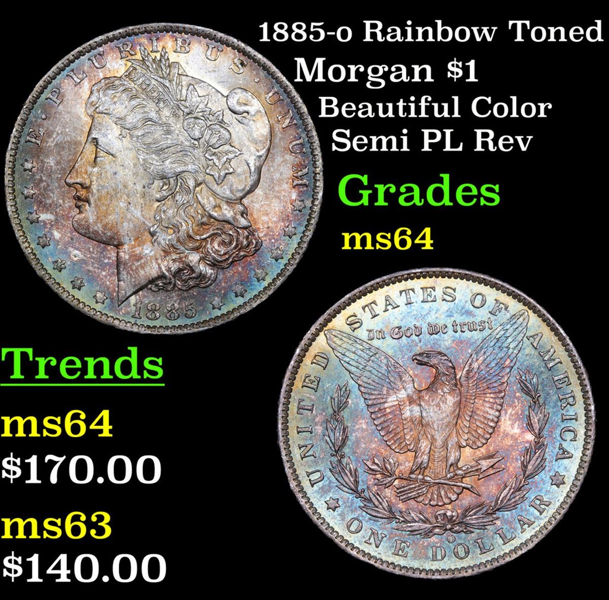 1885-o Rainbow Toned Morgan Dollar $1 Grades Choice Unc.         A Corey's Pick
