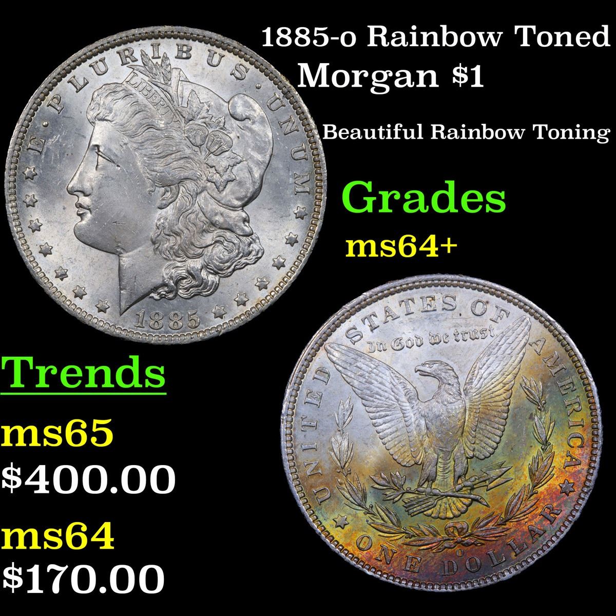 1885-o Rainbow Toned Morgan Dollar $1 Grades Choice+ Unc.