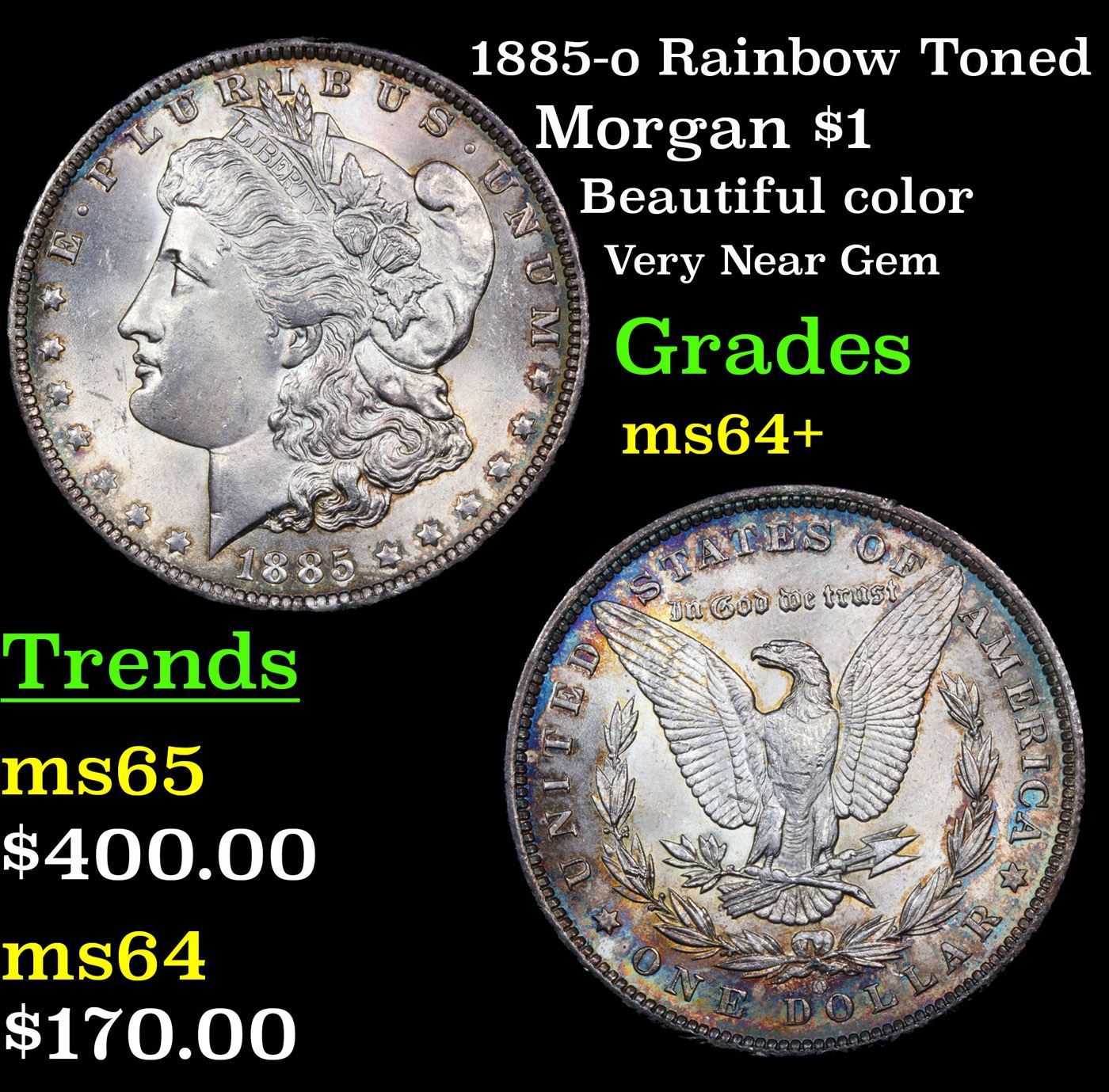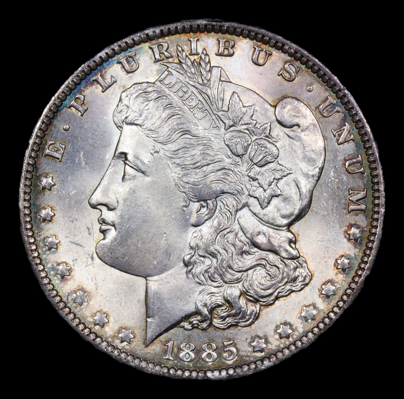 1885-o Rainbow Toned Morgan Dollar $1 Grades Choice+ Unc.