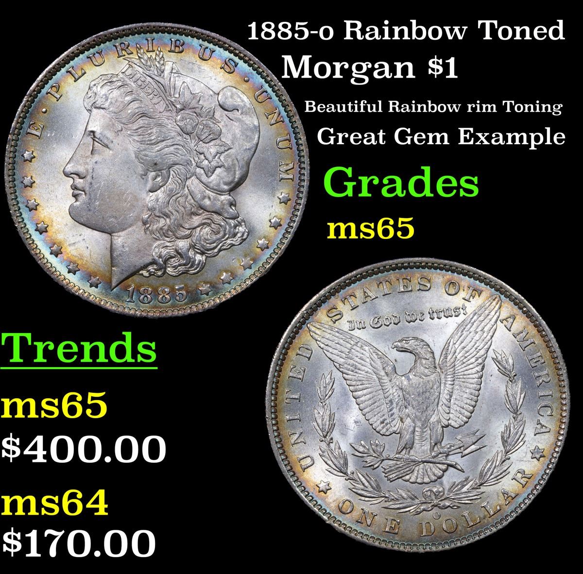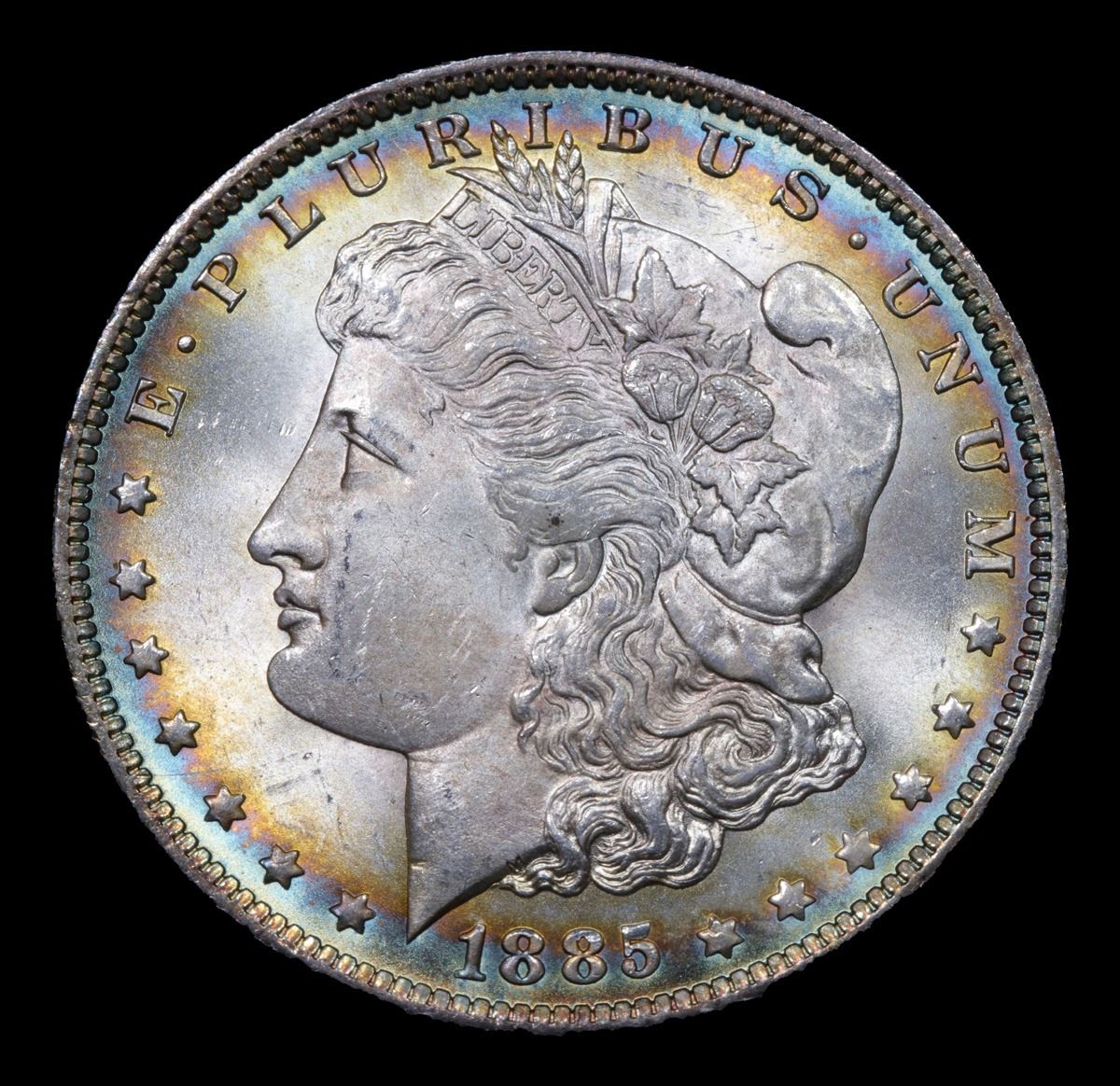 1885-o Rainbow Toned Morgan Dollar $1 Grades GEM Unc.