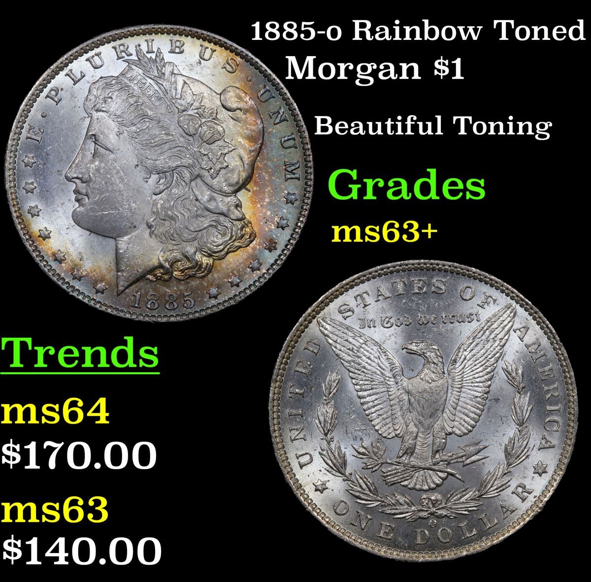 1885-o Rainbow Toned Morgan Dollar $1 Grades Select+ Unc.