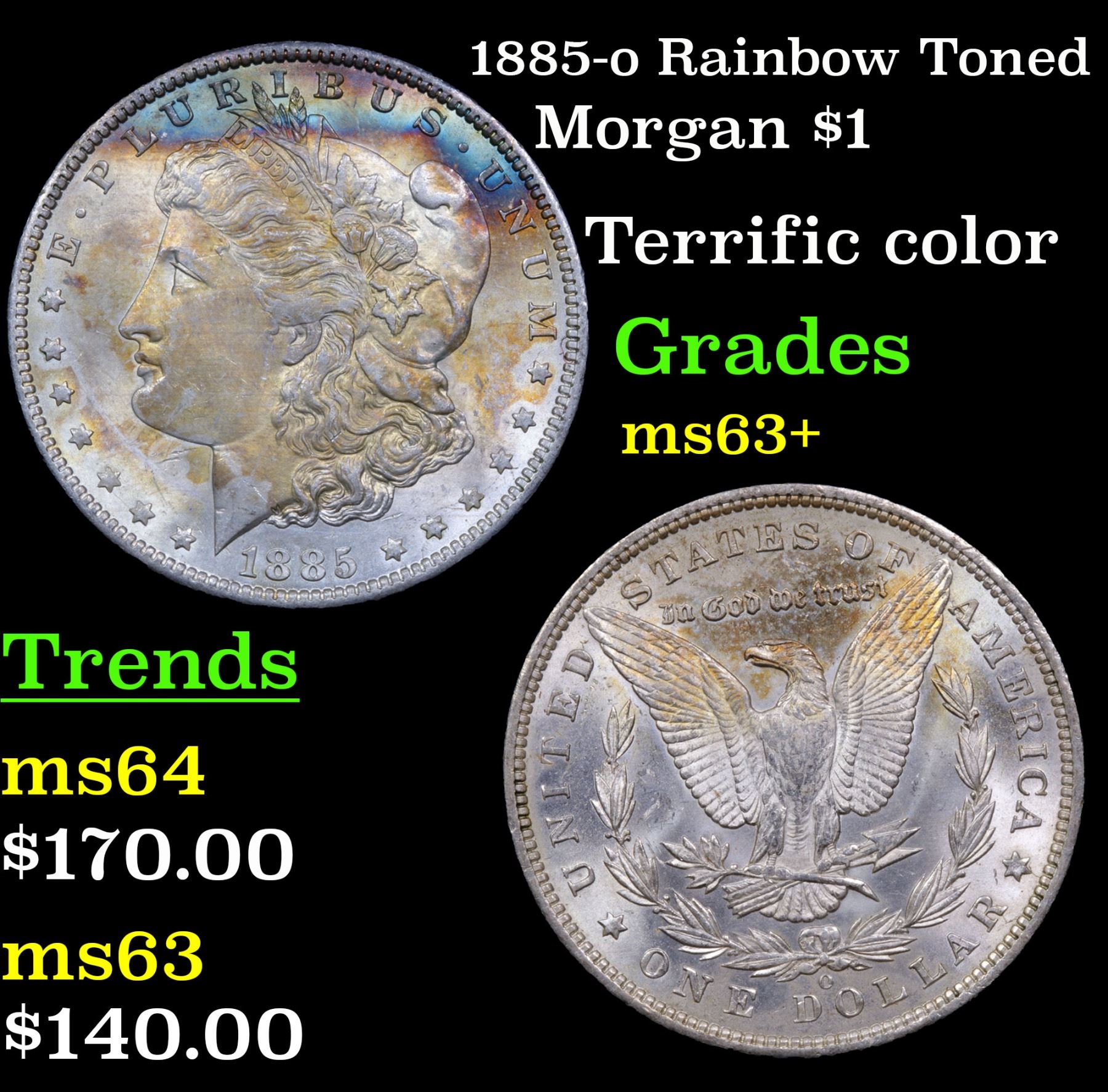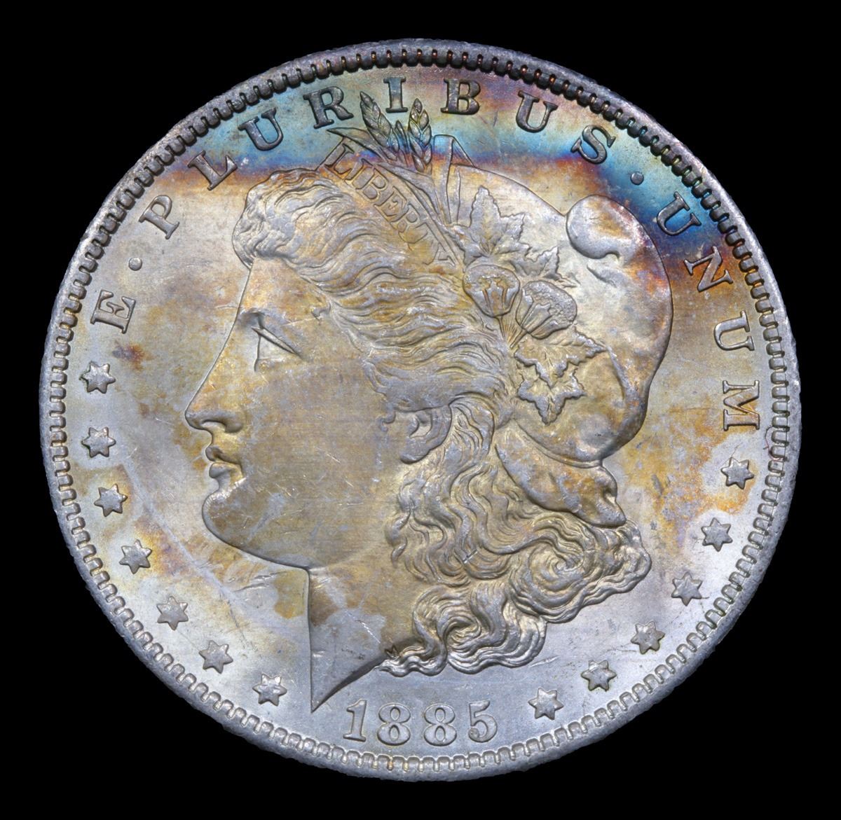 1885-o Rainbow Toned Morgan Dollar $1 Grades Select+ Unc.