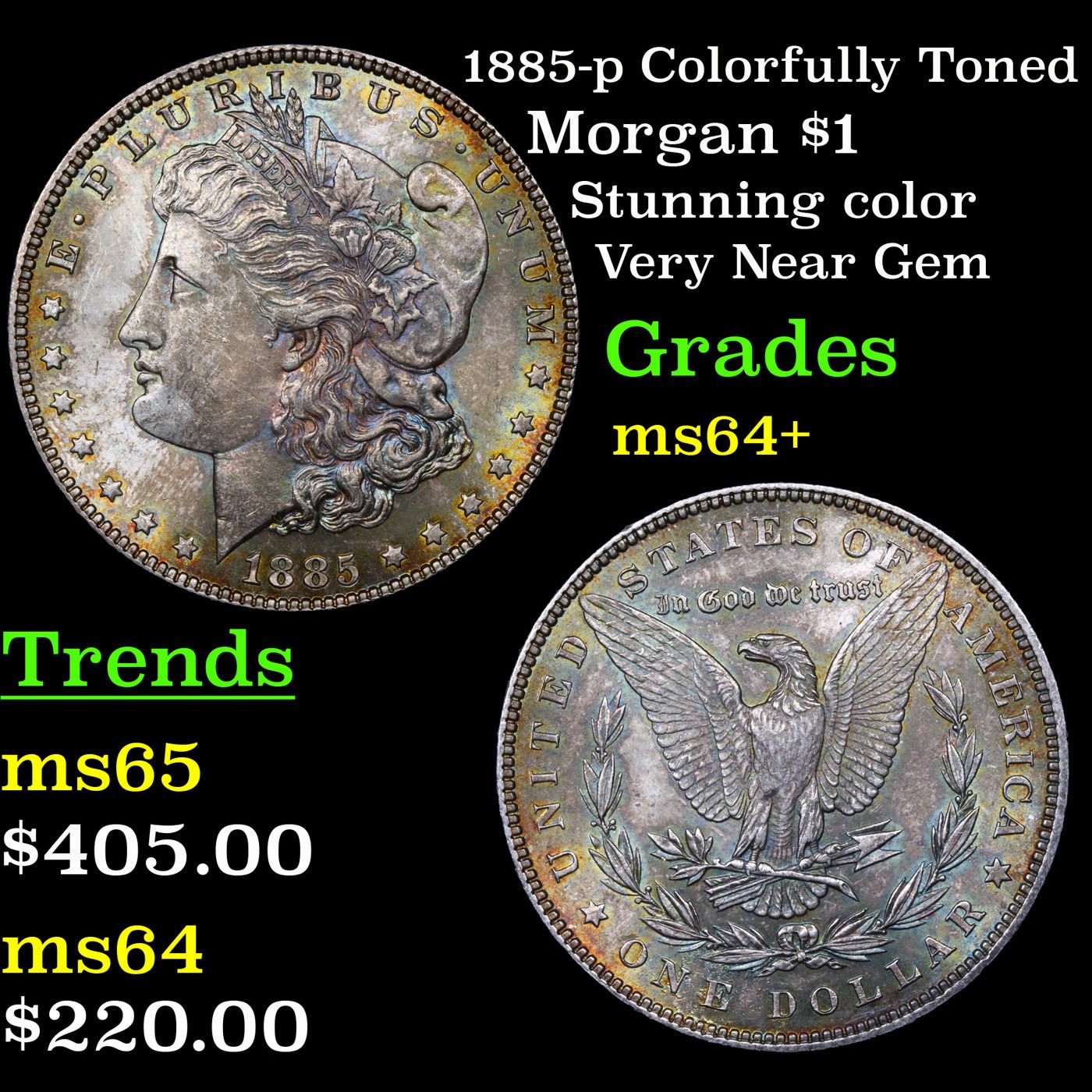 1885-p Colorfully Toned Morgan Dollar $1 Graded Choice+ Unc. 0