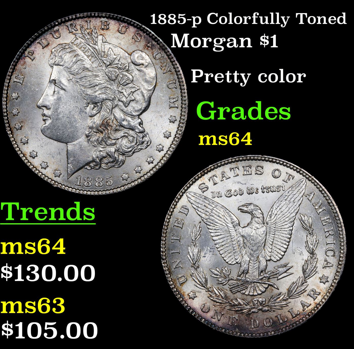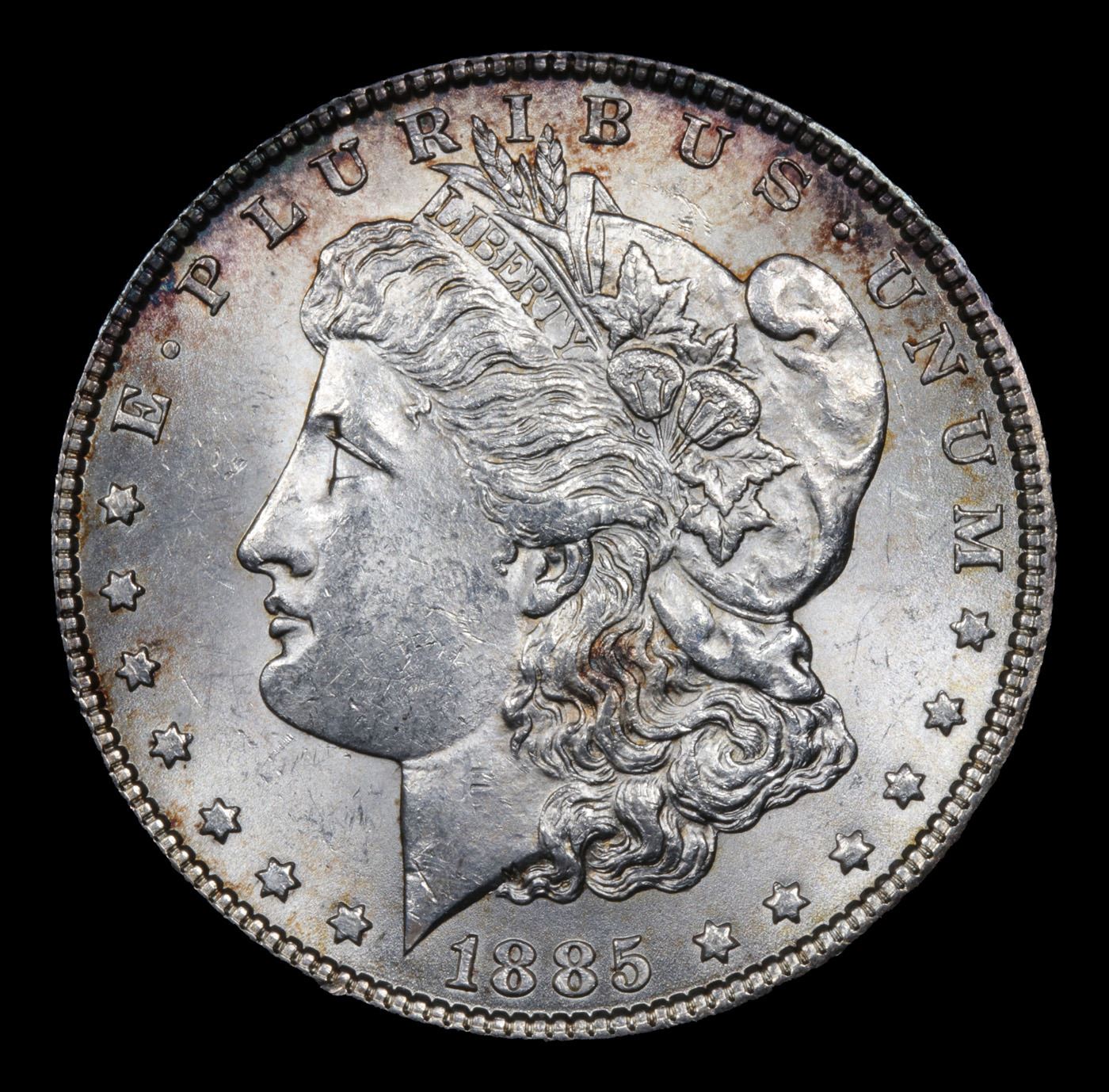 1885-p Colorfully Toned Morgan Dollar $1 Grades Choice Unc.