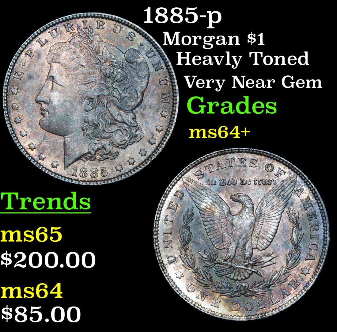 1885-p Heavly Toned Very Near Gem Morgan Dollar $1 Grades Choice+ Unc.