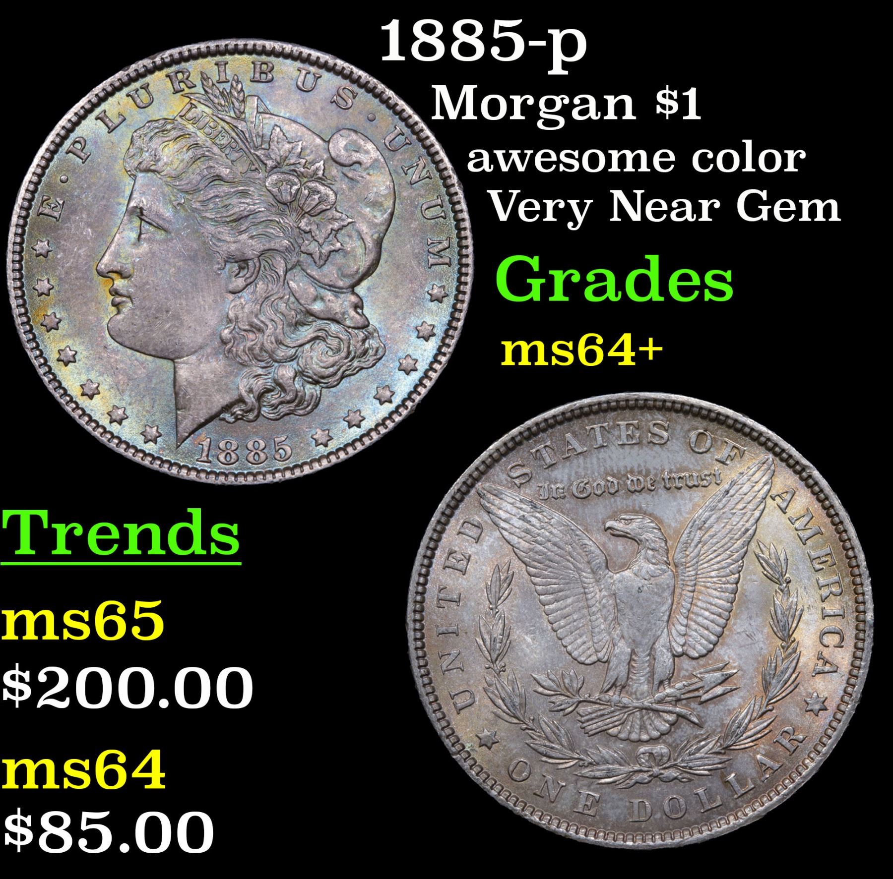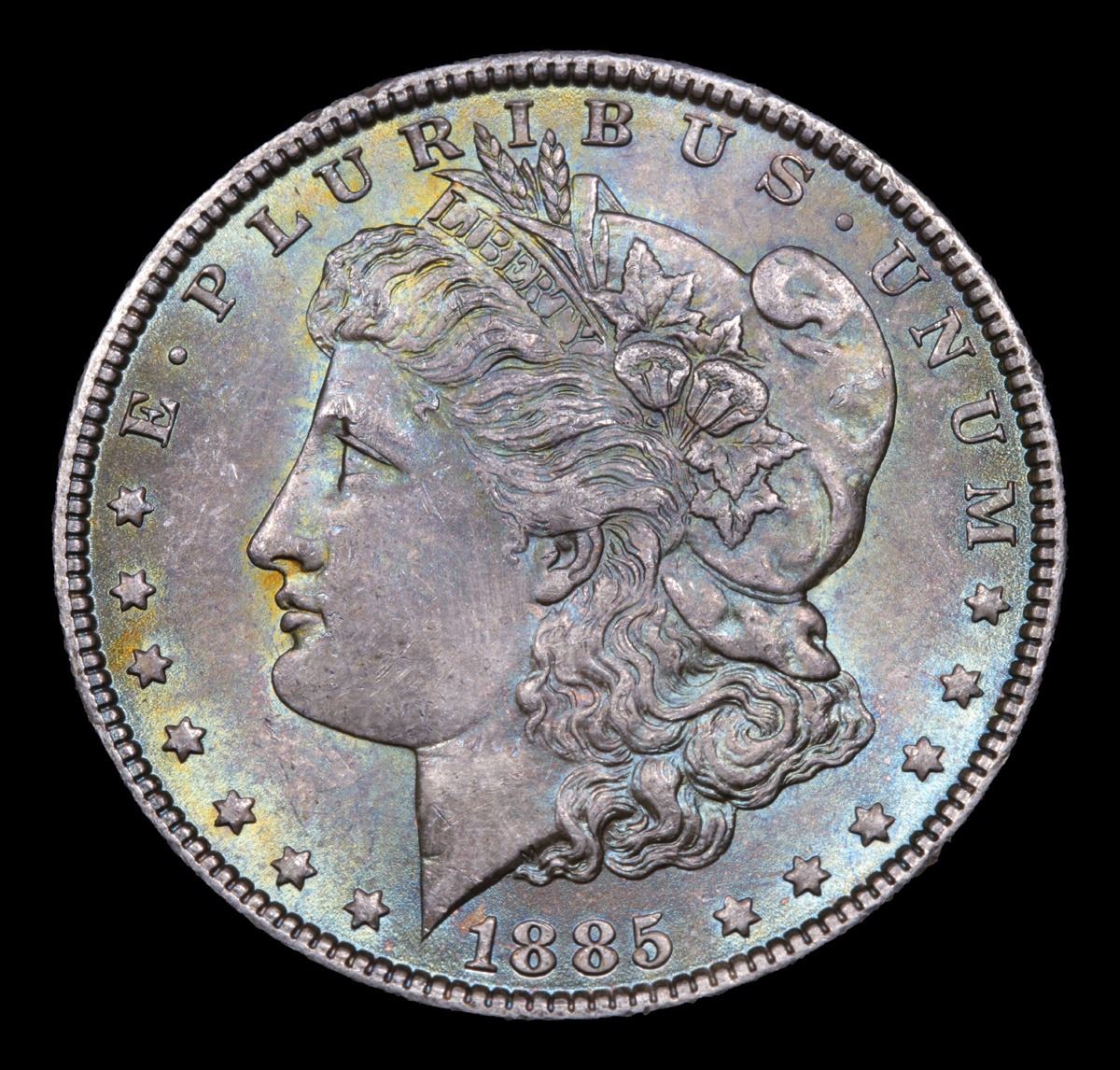 1885-p awesome color Very Near Gem Morgan Dollar $1 Grades Choice+ Unc.