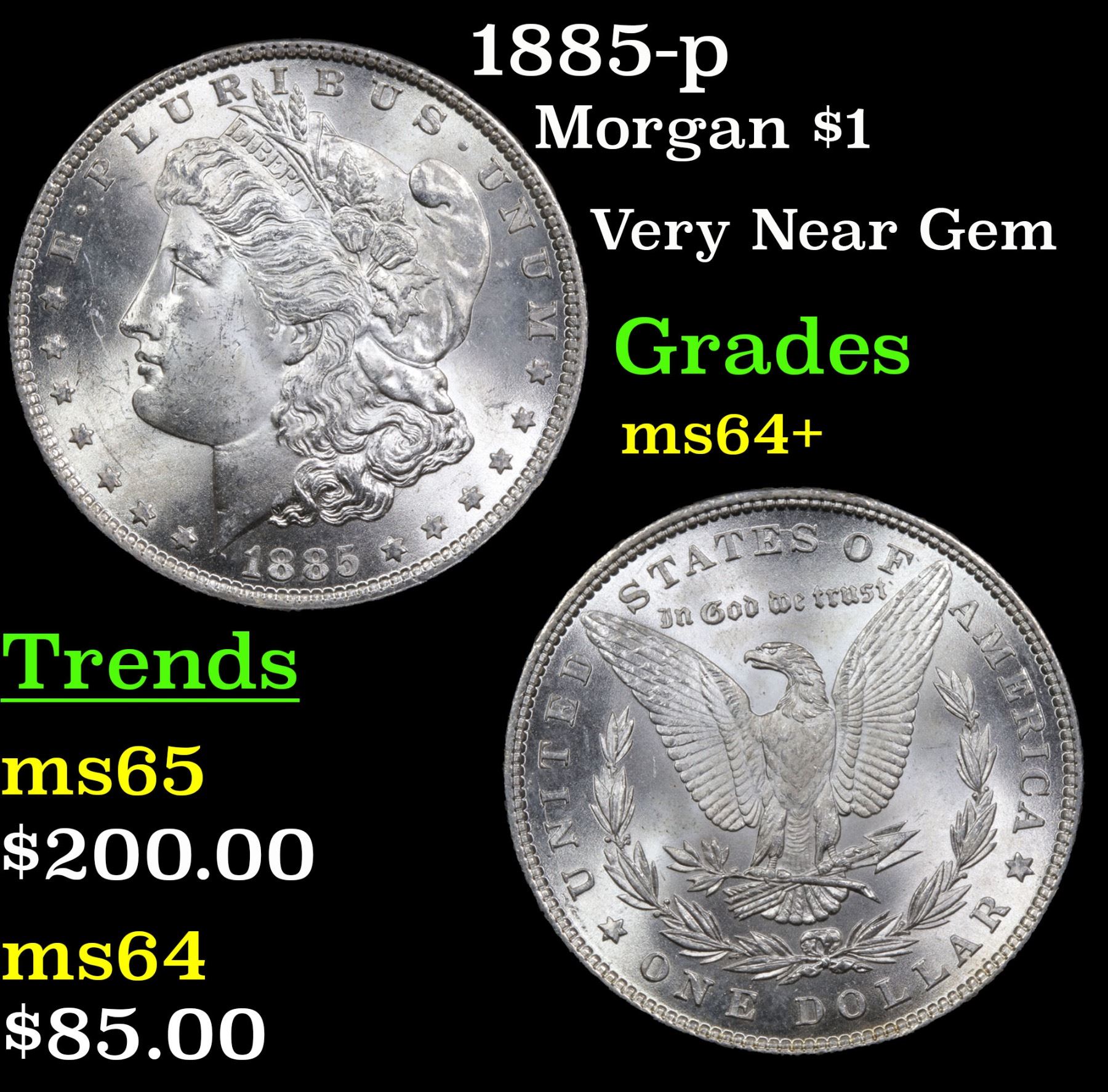 1885-p Morgan Dollar $1 Grades Choice+ Unc.