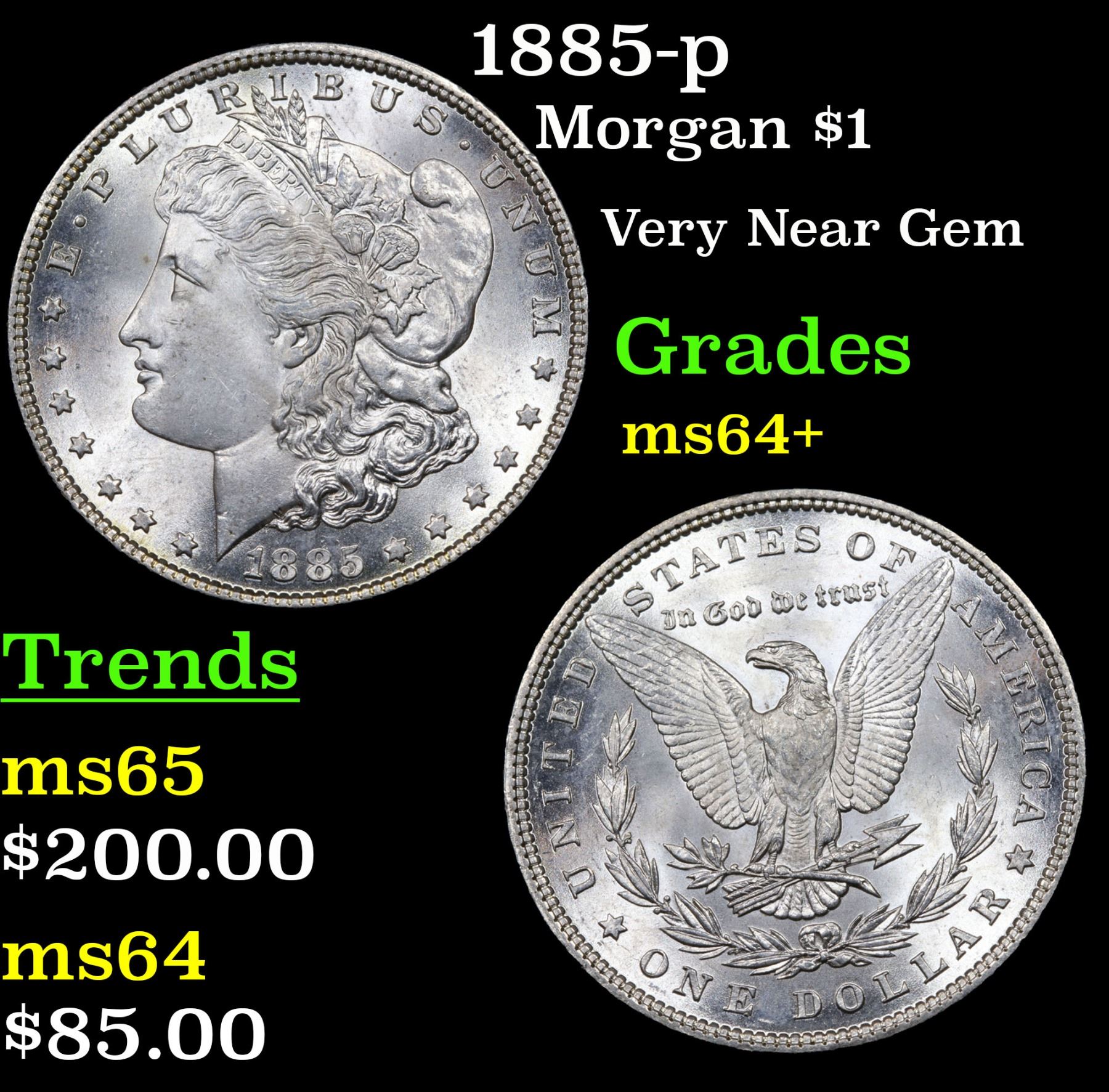 1885-p Morgan Dollar $1 Grades Choice+ Unc.