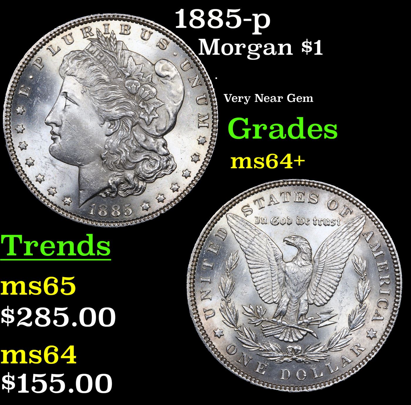 1885-p Morgan Dollar $1 Grades Choice+ Unc.