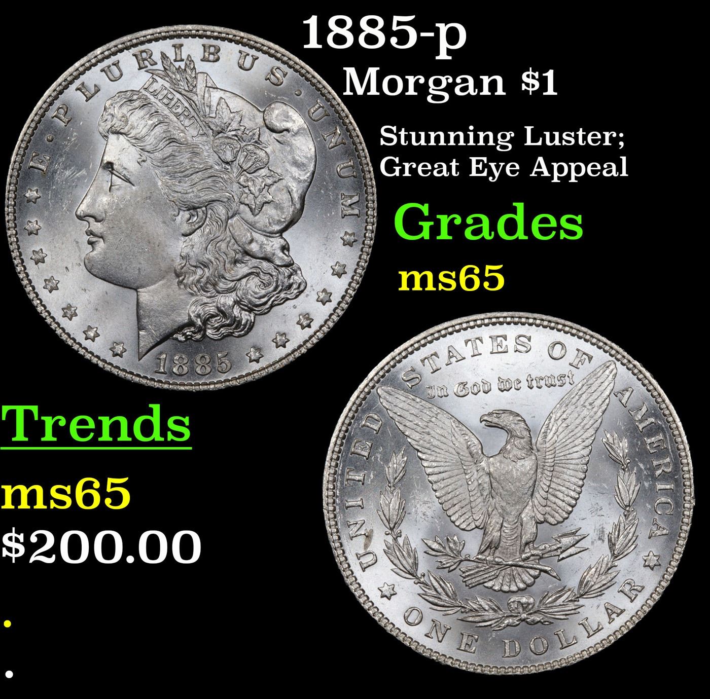 1885-p Morgan Dollar $1 Grades GEM Unc.