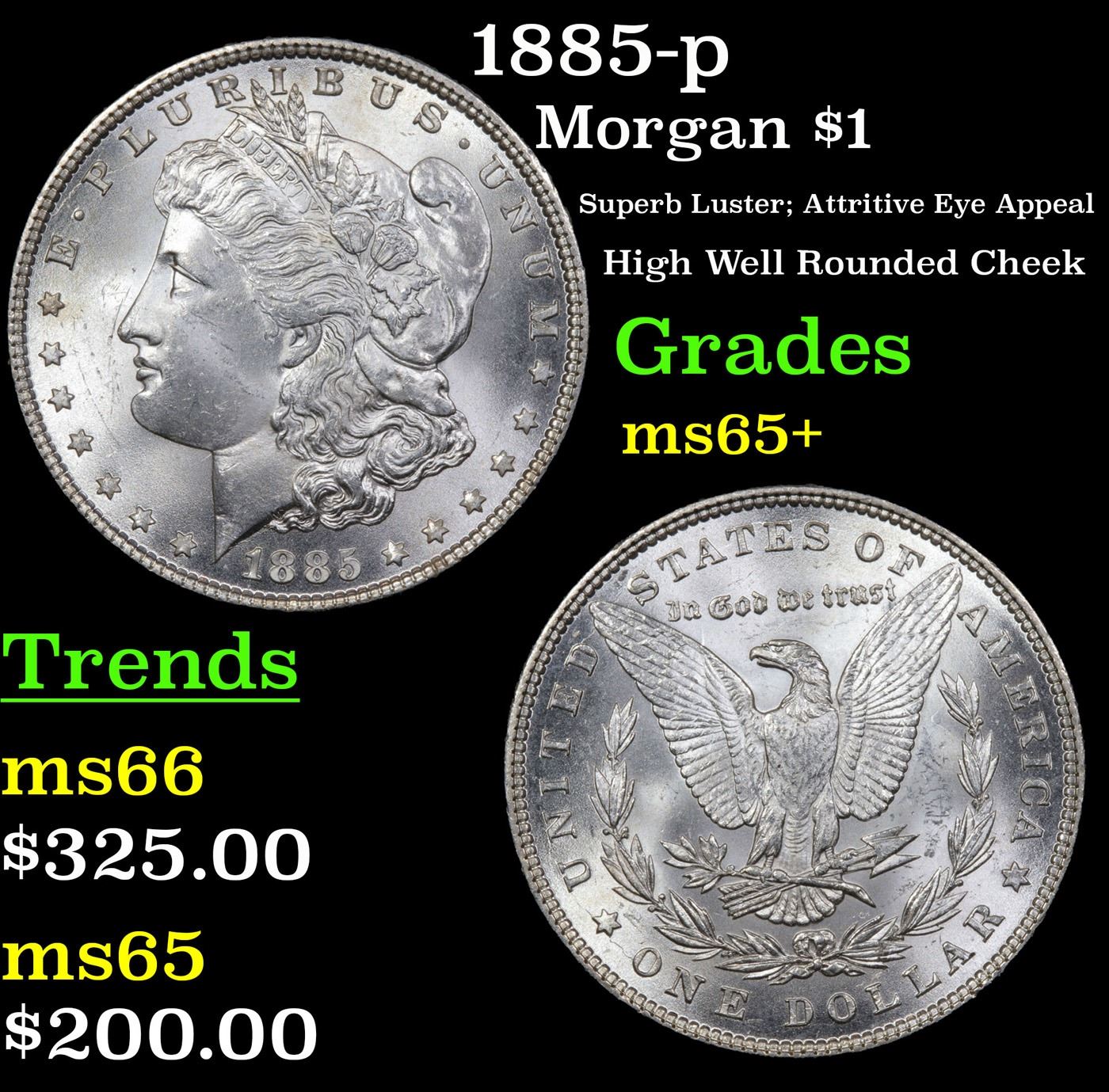 1885-p Morgan Dollar $1 Grades GEM+ Unc.