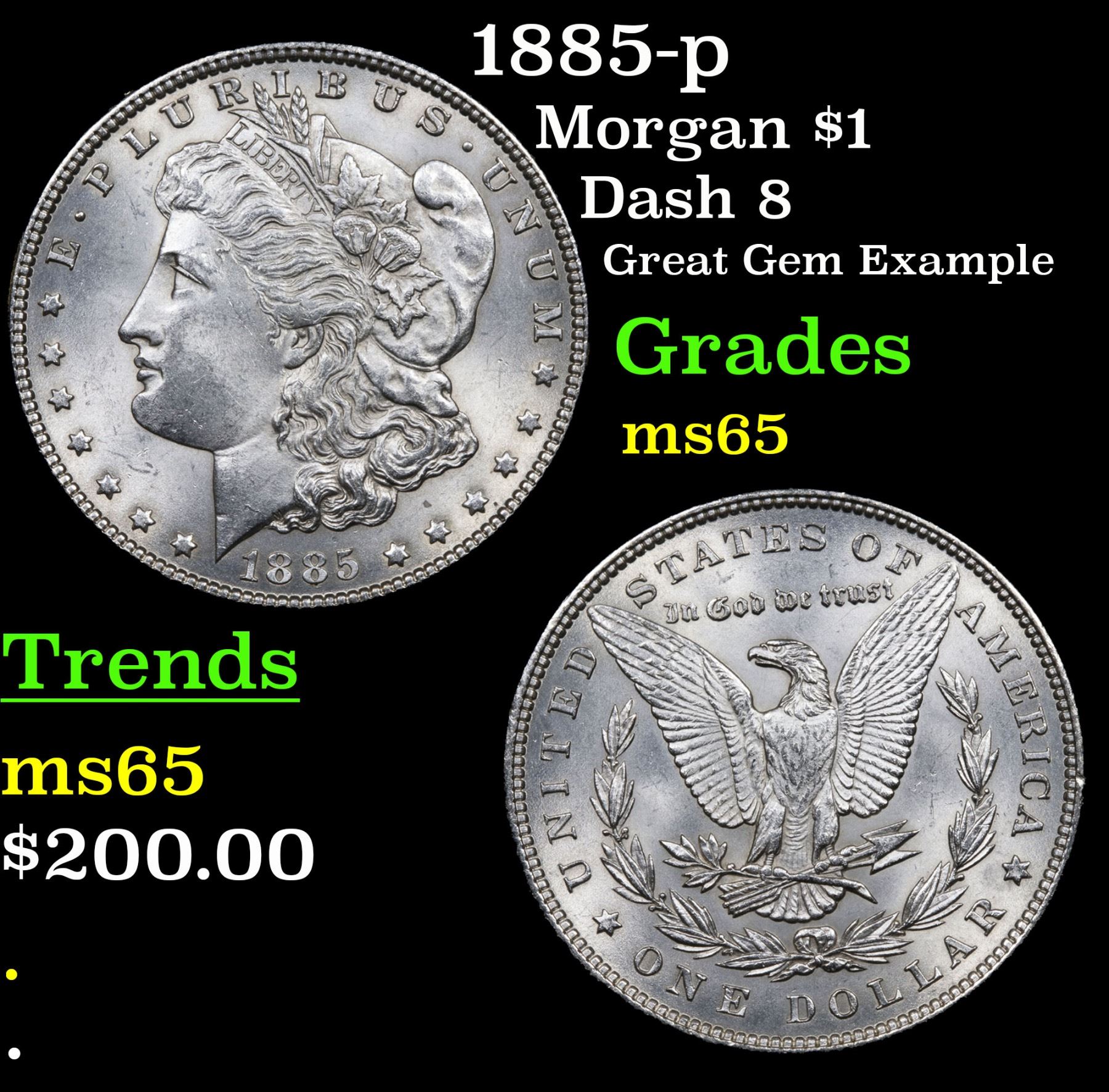 1885-p Morgan Dollar $1 Grades GEM Unc.