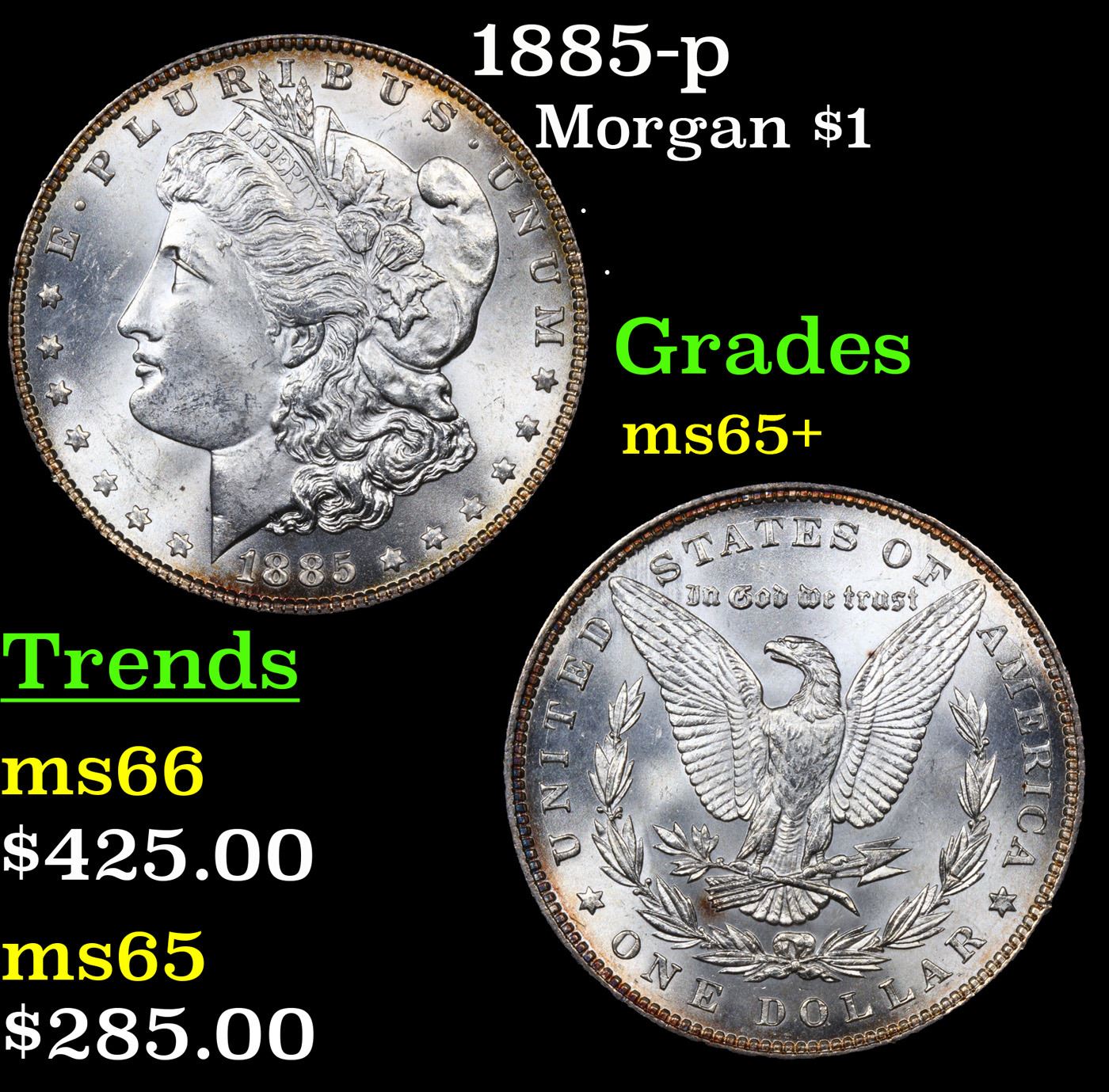 1885-p Morgan Dollar $1 Grades GEM+ Unc.
