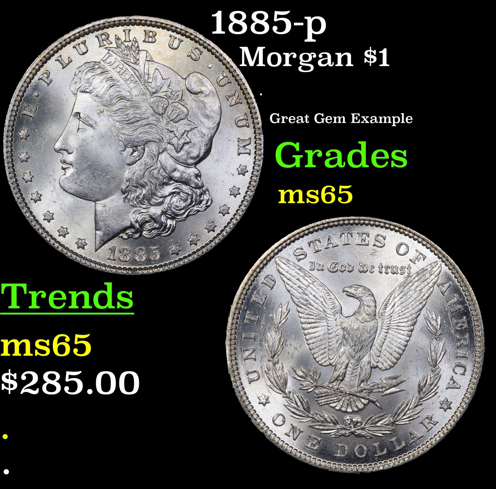 1885-p Morgan Dollar $1 Grades GEM Unc.