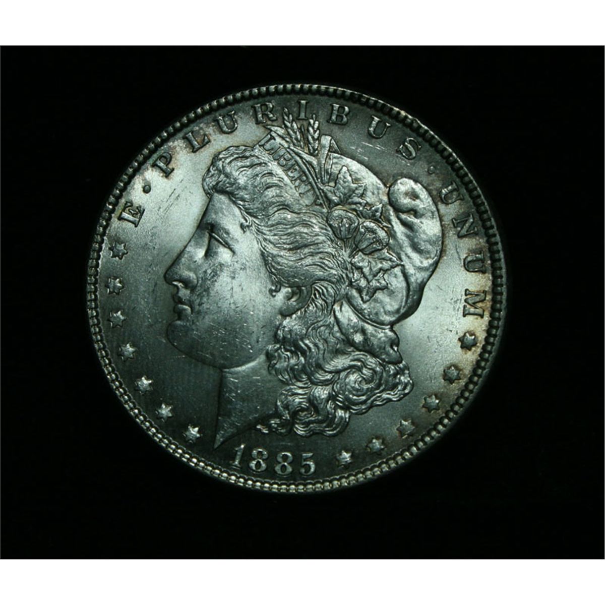 A Beautiful Morgan with Great Luster, a patch of toning on the obverse and the Reverse has a satiny look with a very pretty Rose patina. The Wholesale Greysheet lists an ms64 at $80 and ms65 at $175 Estimated Value $125