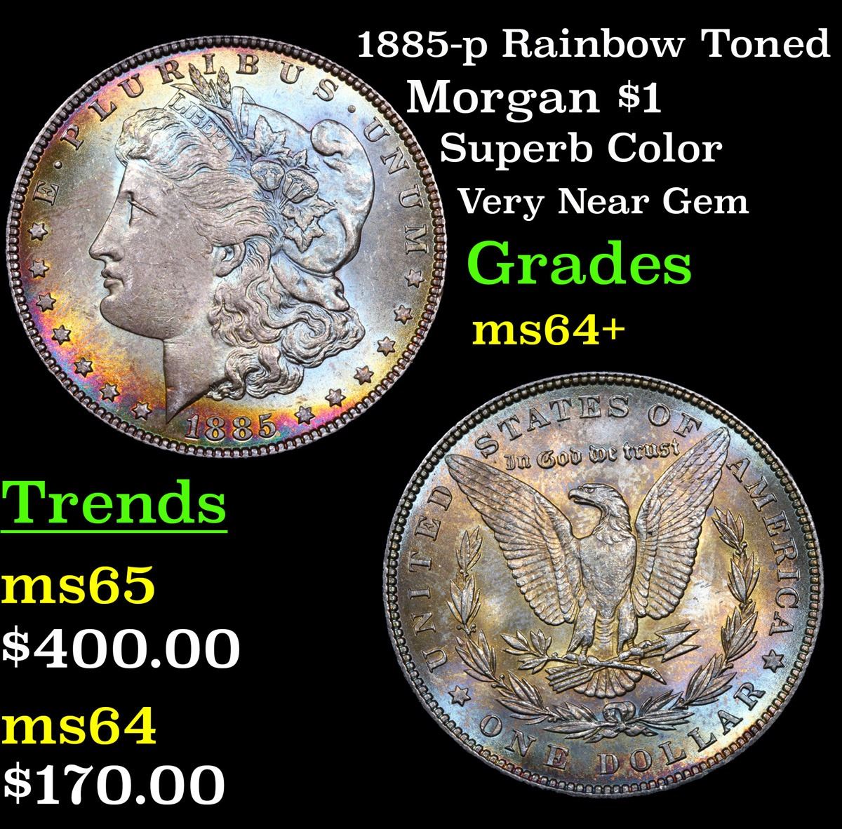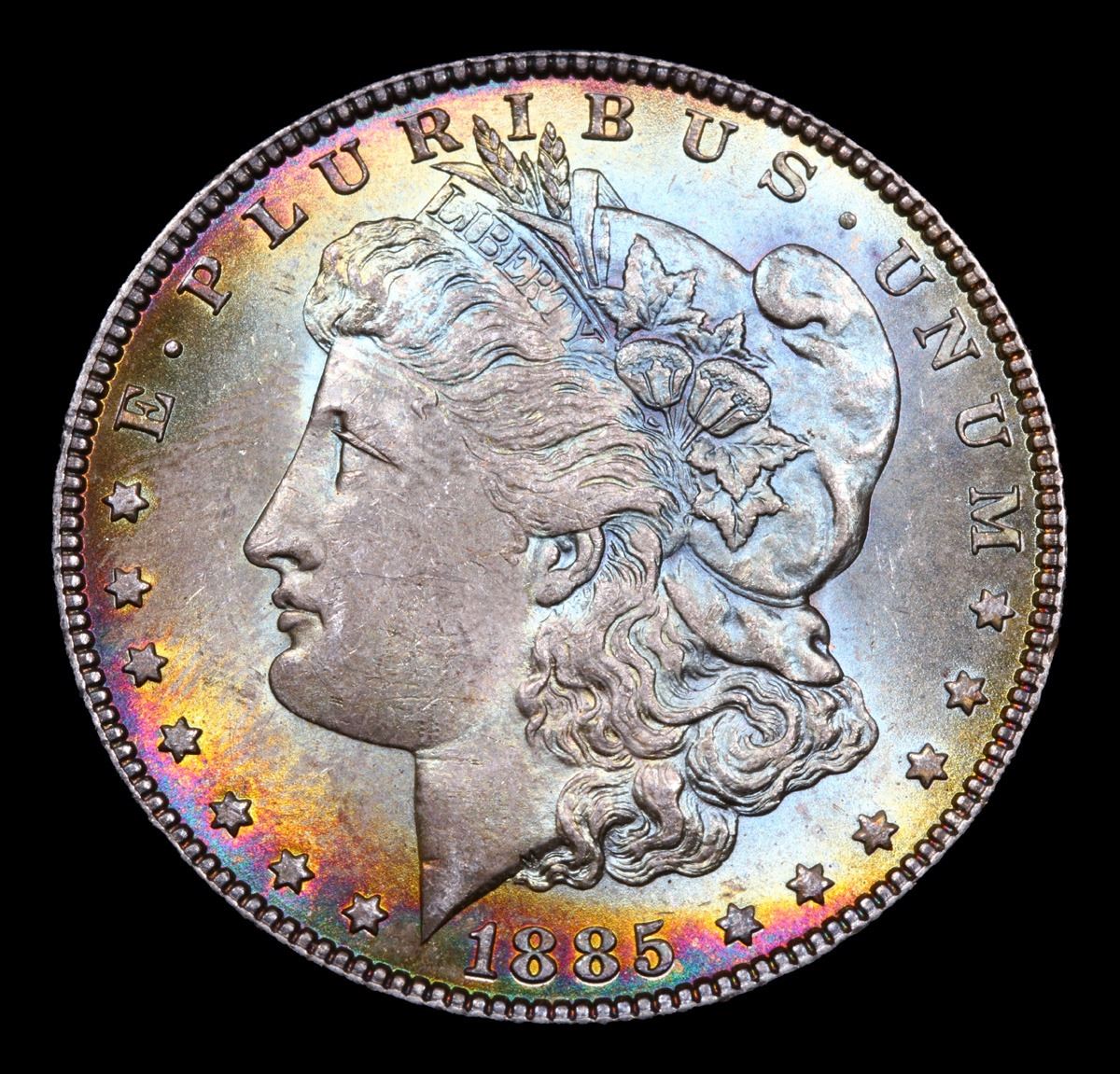 1885-p Rainbow Toned Superb Color Very Near Gem Morgan Dollar $1 Grades Choice+ Unc. A Corey's Pick, Bid to Win Coin
