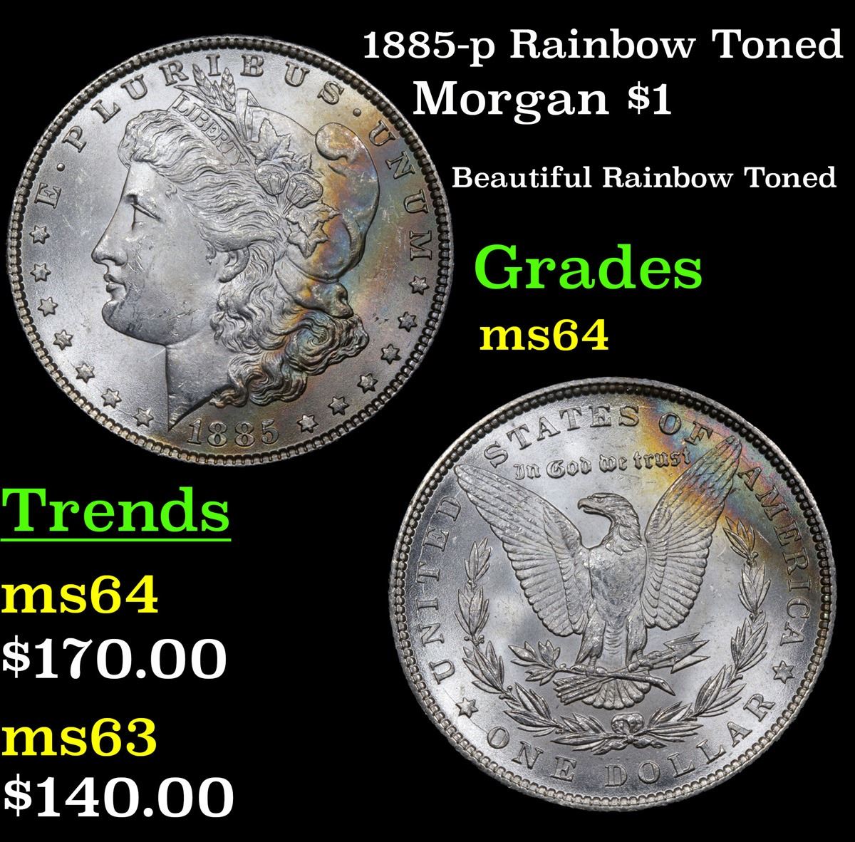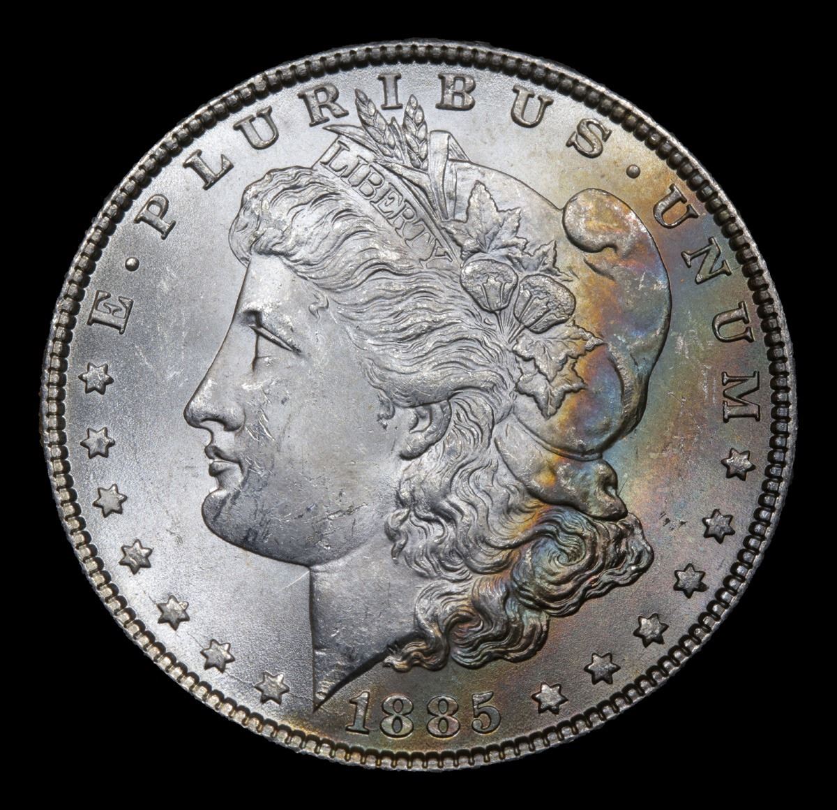 1885-p Rainbow Toned Morgan Dollar $1 Grades Choice Unc. A Corey's Pick