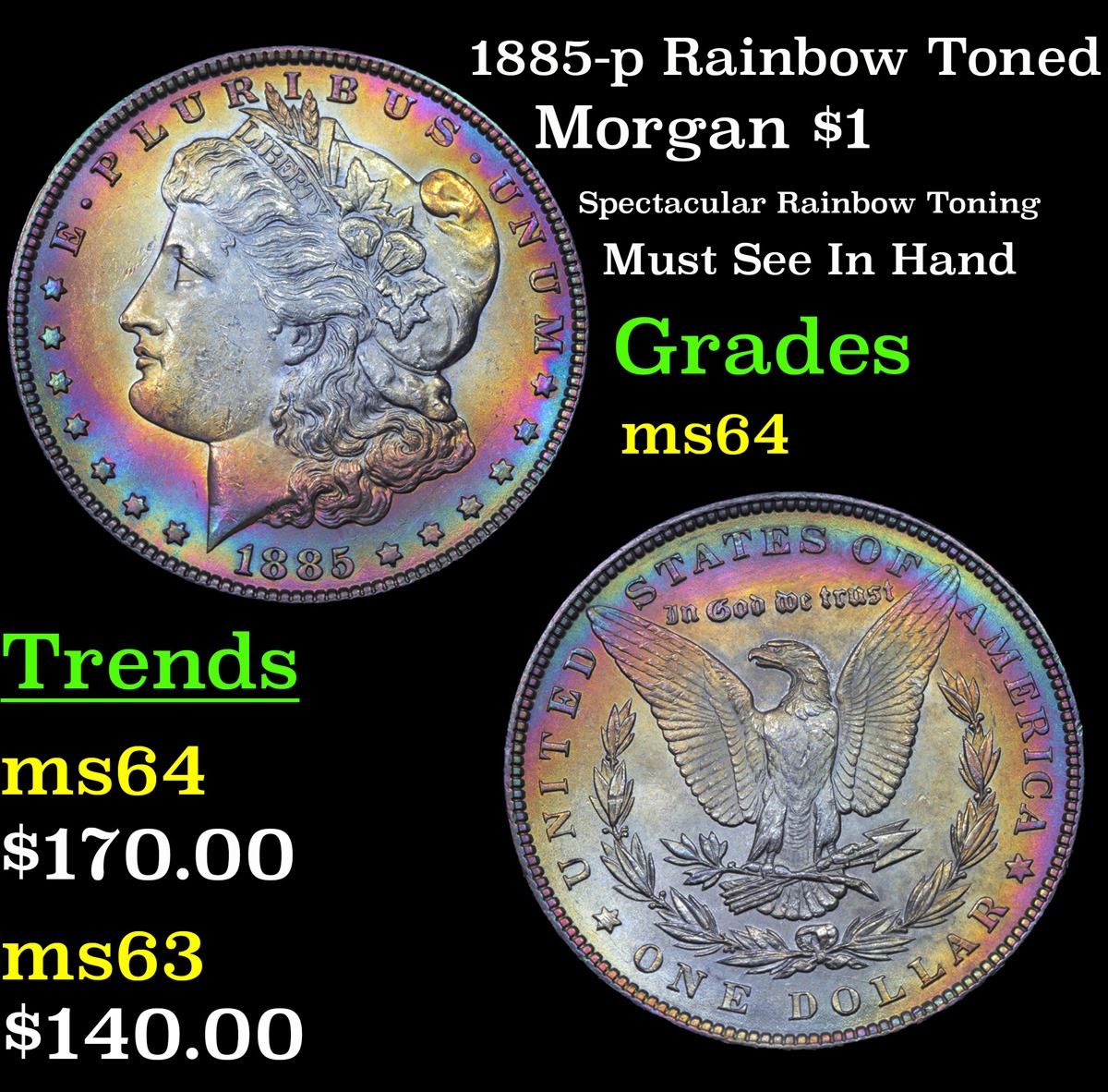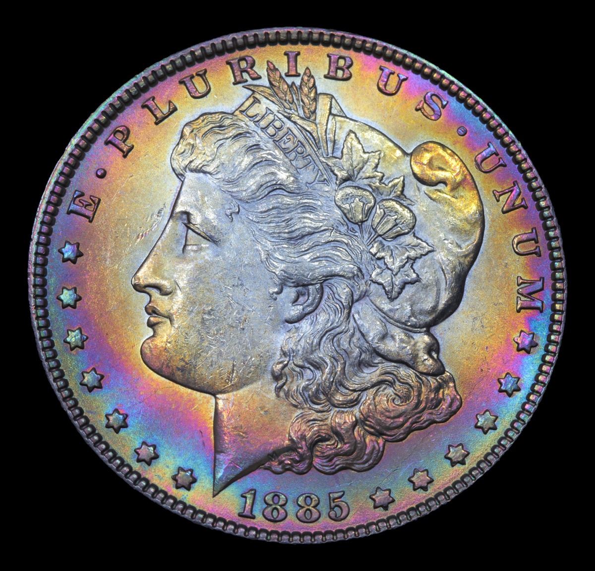 1885-p Rainbow Toned Morgan Dollar $1 Grades Choice Unc.